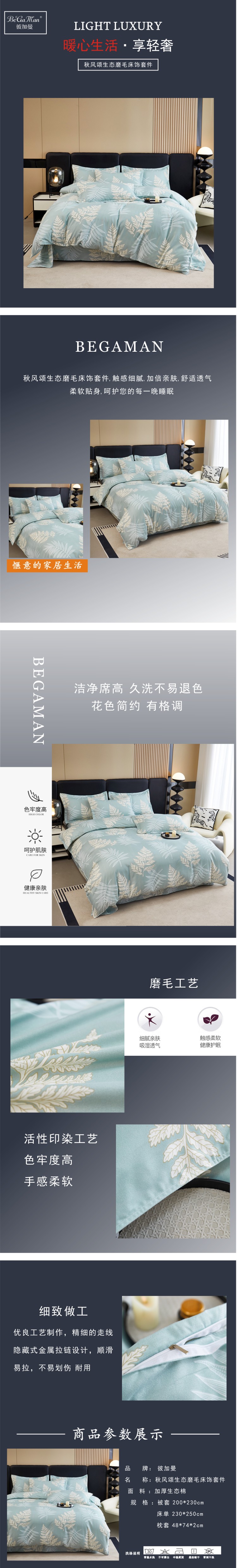 商品名称:BeGaMan/彼加曼秋风颂生态磨毛床品四套件200*230cm BGM-T2488