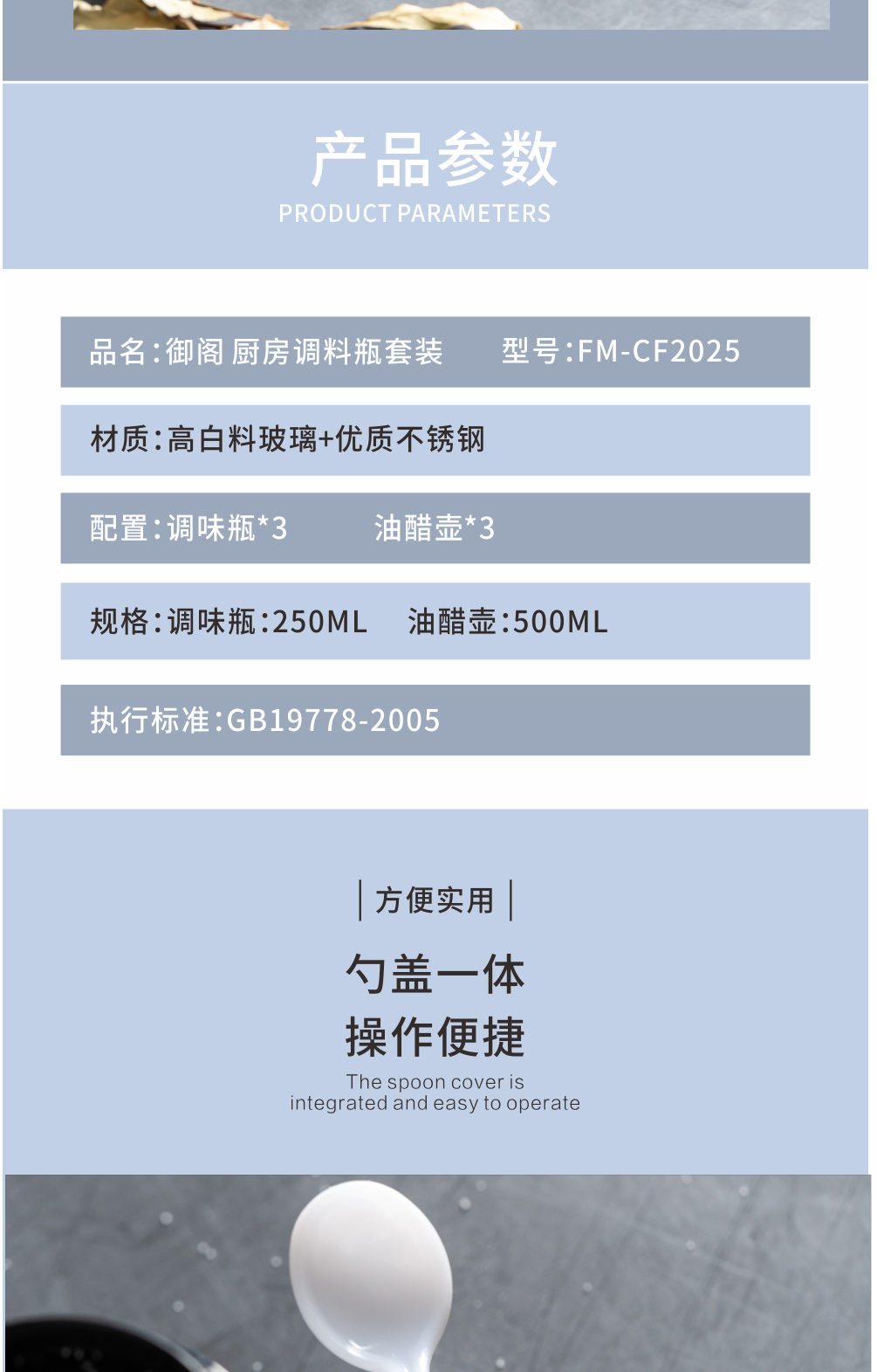 商品名称:PHMI/菲米生活御阁厨房调料瓶六件套装FM-CF2025