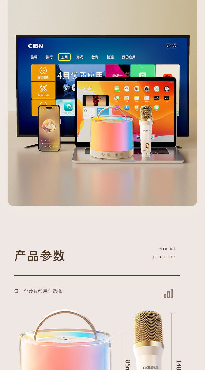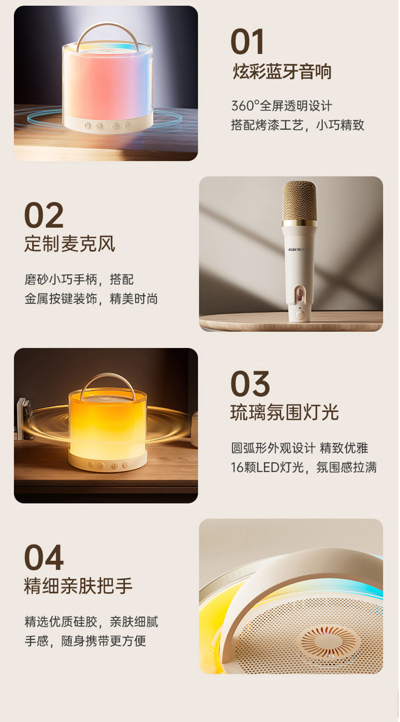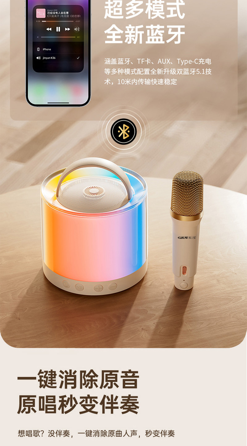 商品名称:GKN/格卡诺炫彩蓝牙音响+话筒-米白色GKN-LYYX-02