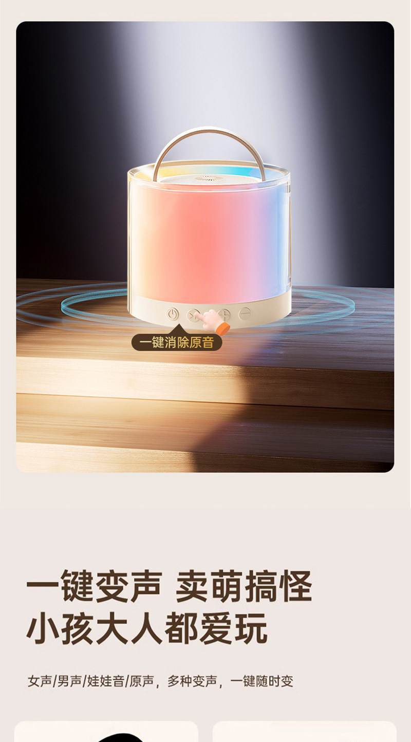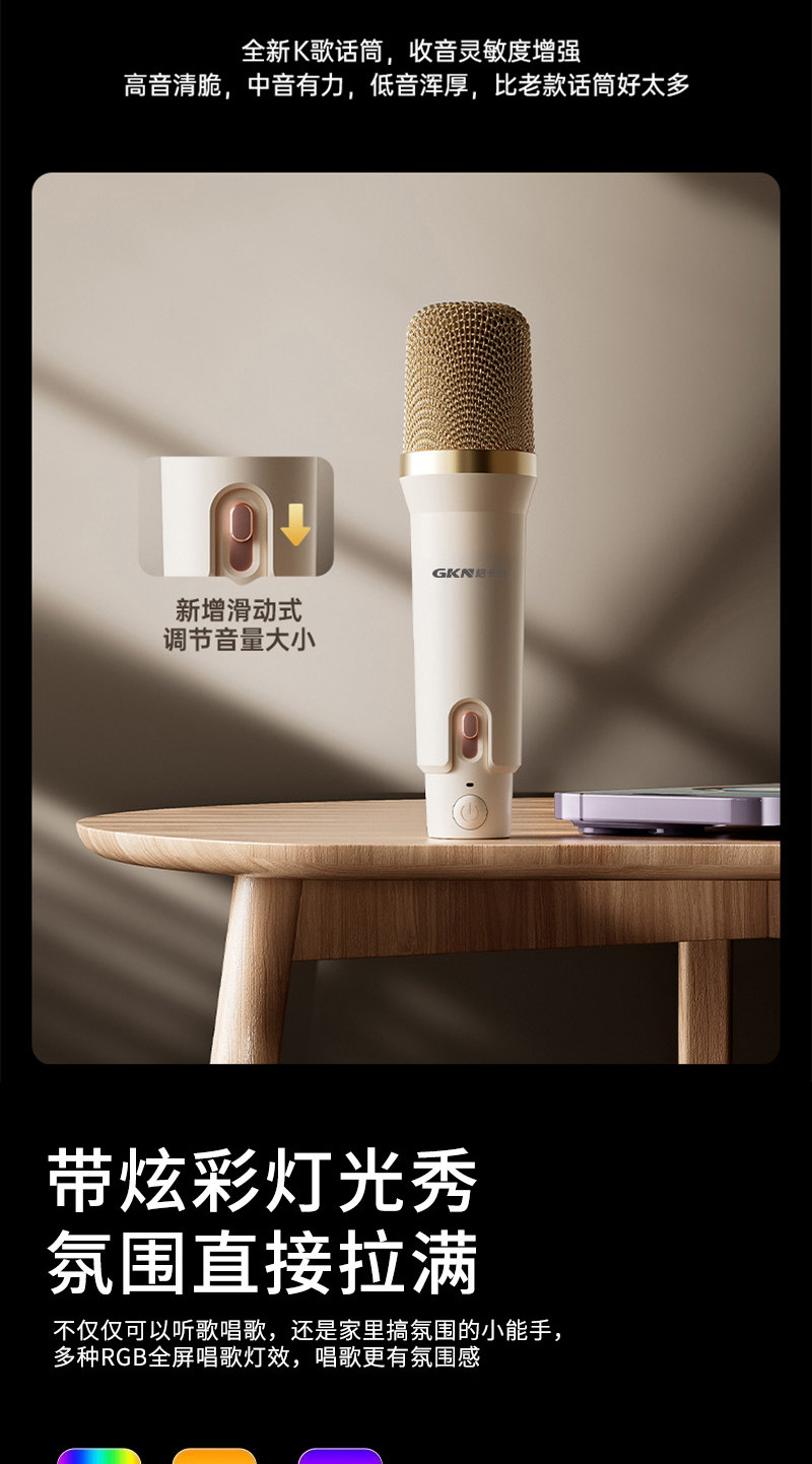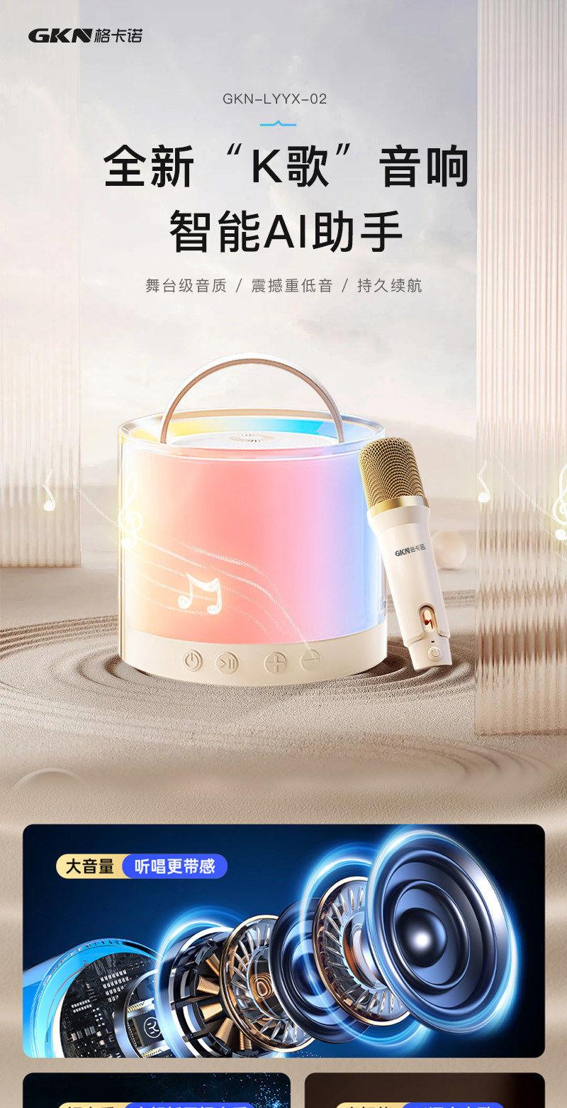 商品名称:GKN/格卡诺炫彩蓝牙音响+话筒-米白色GKN-LYYX-02
