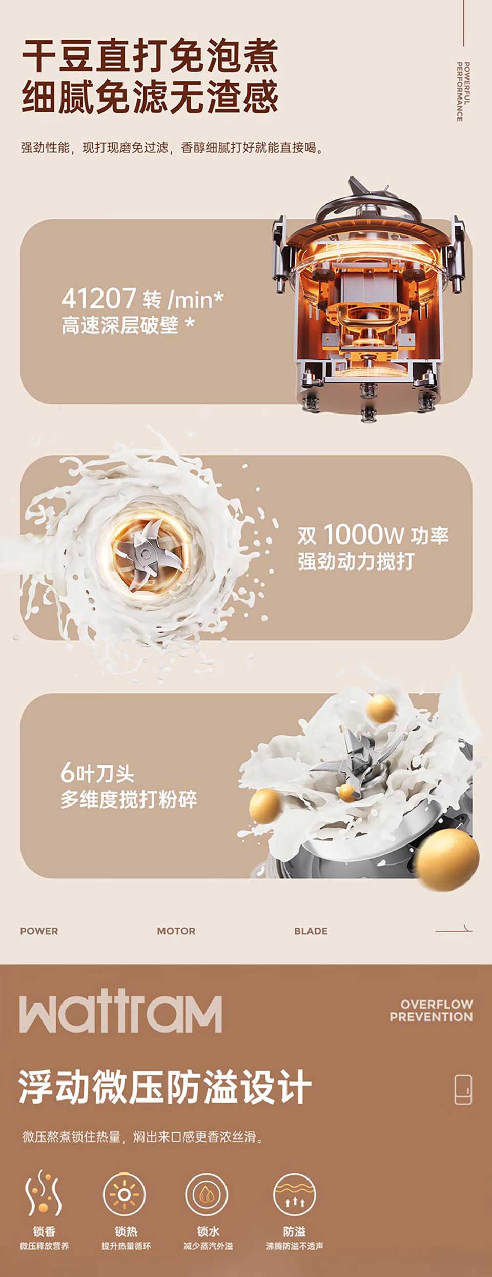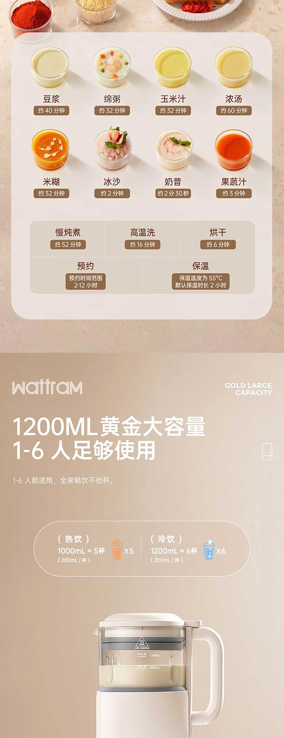 商品名称:wattram/北欧沃朗1.2升破壁机M1