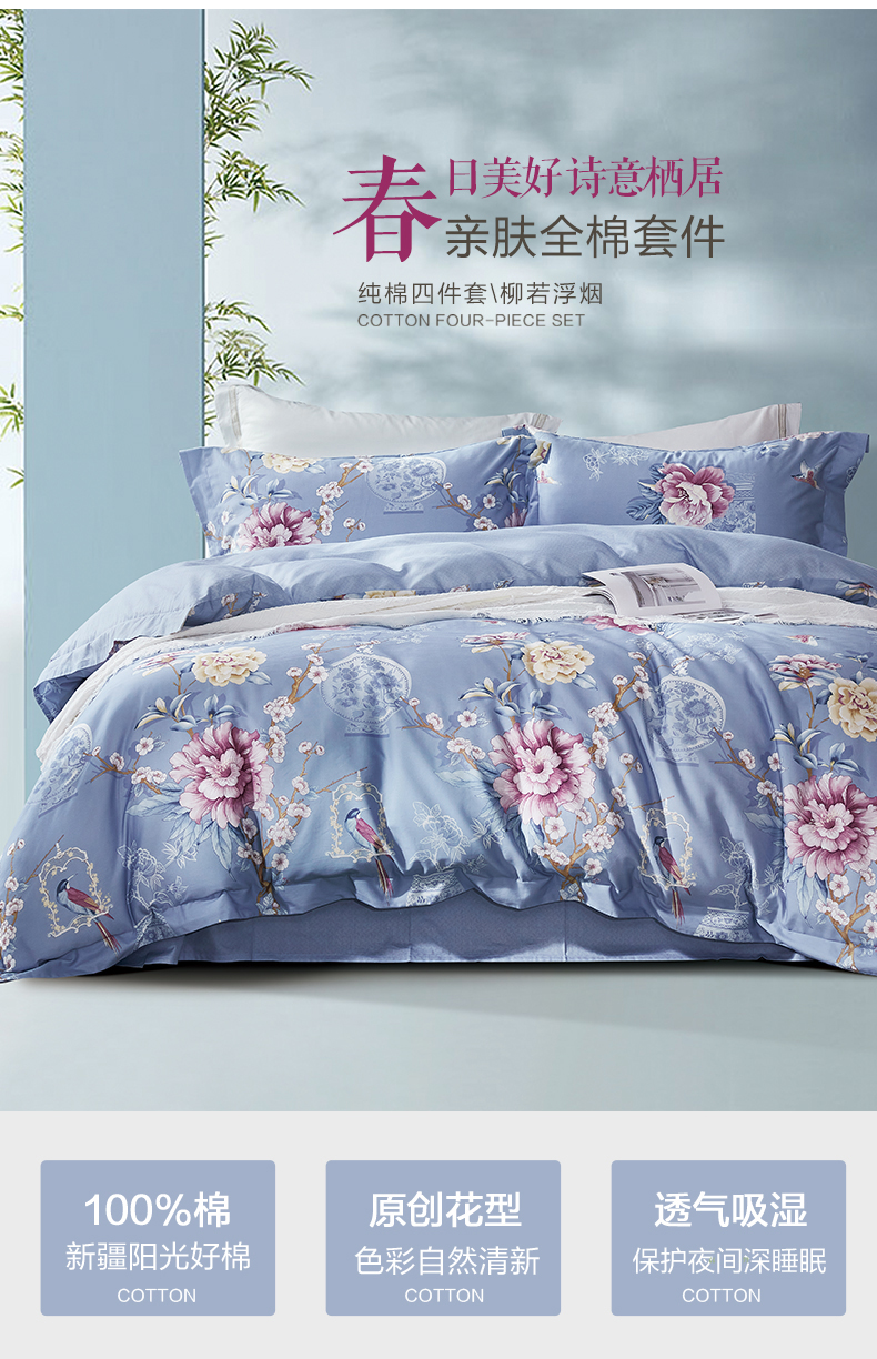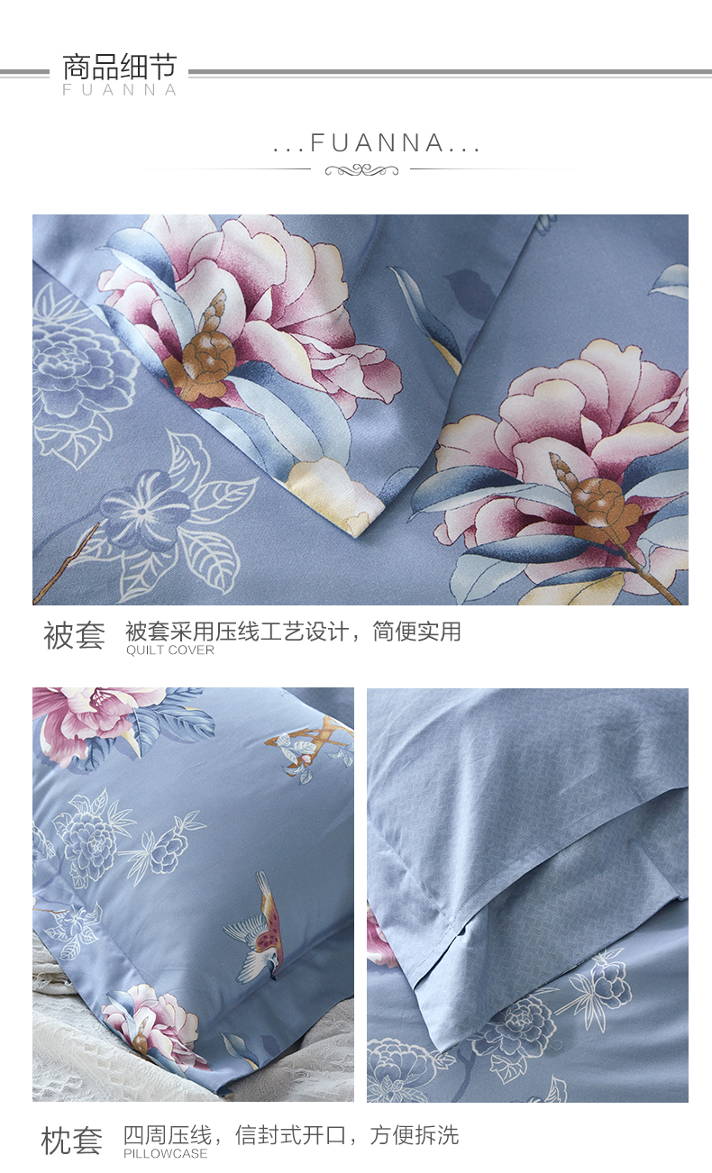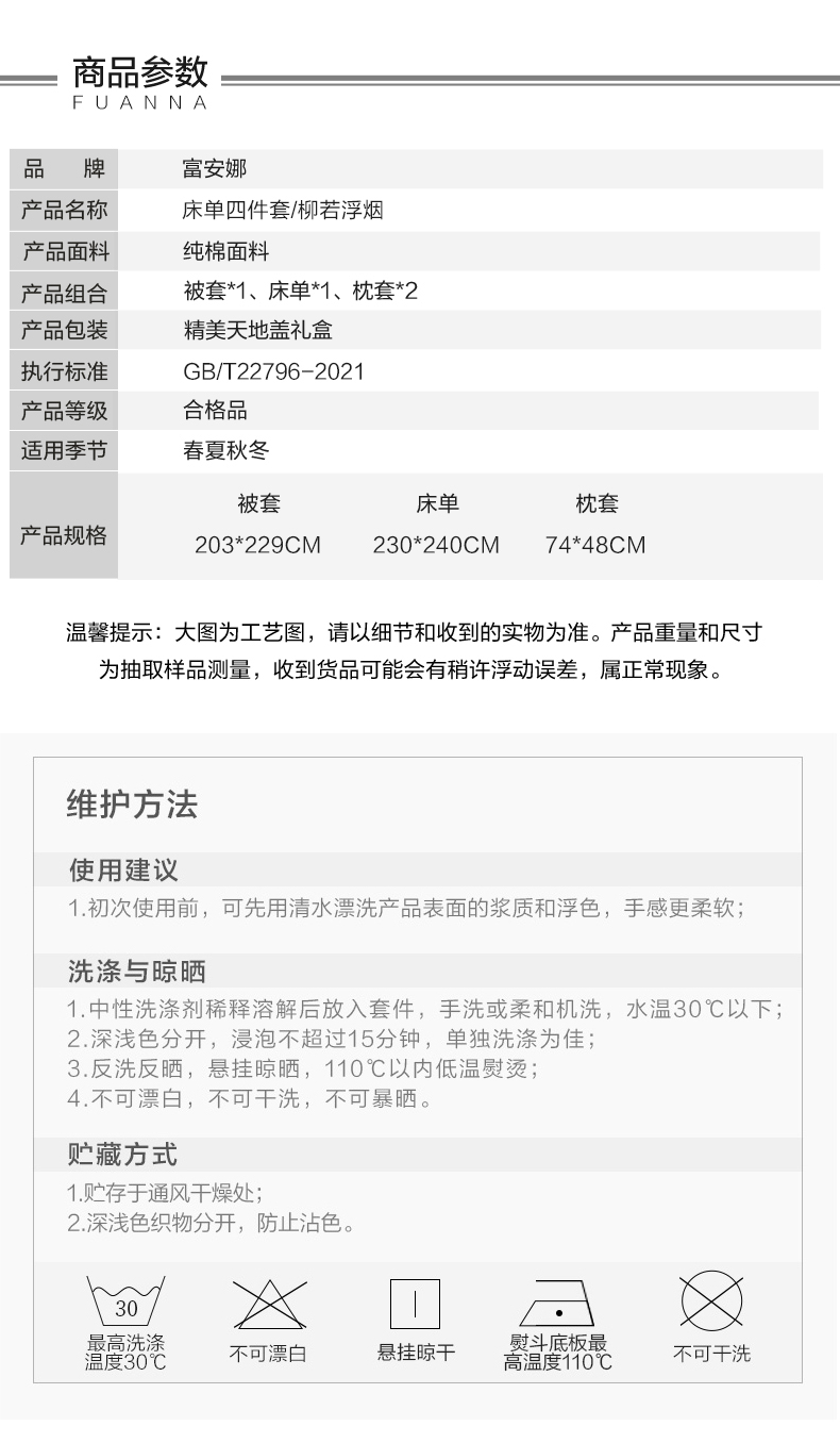 商品名称:【顺丰配送】FUANNA/富安娜柳若浮烟纯棉印花床品四件套203*229cm