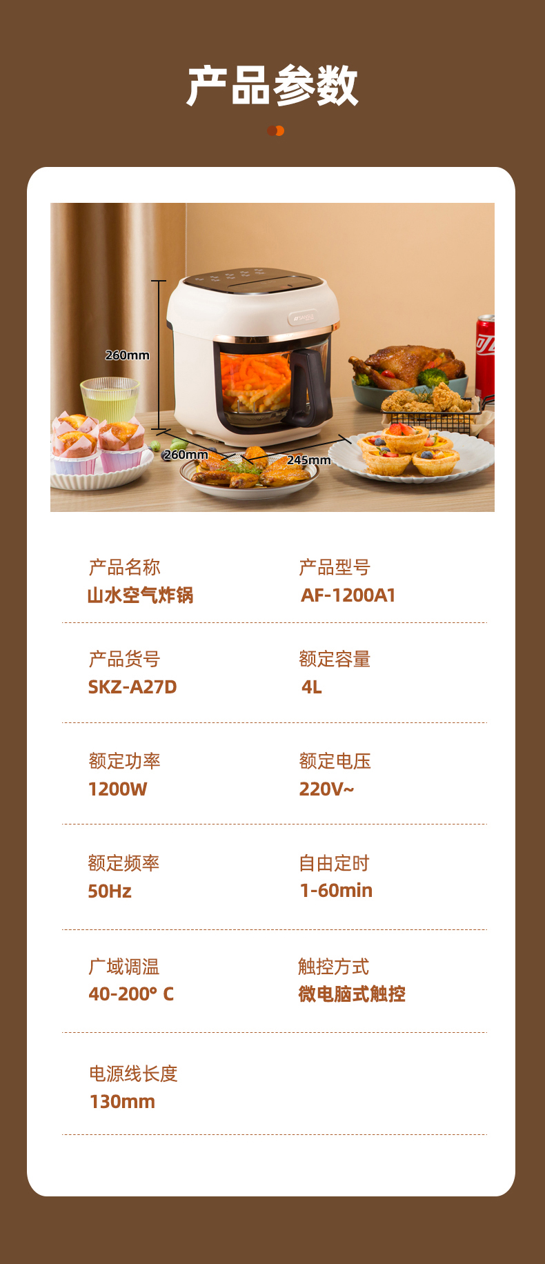 商品名称:SANSUI/山水4升空气炸锅SKZ-A27D