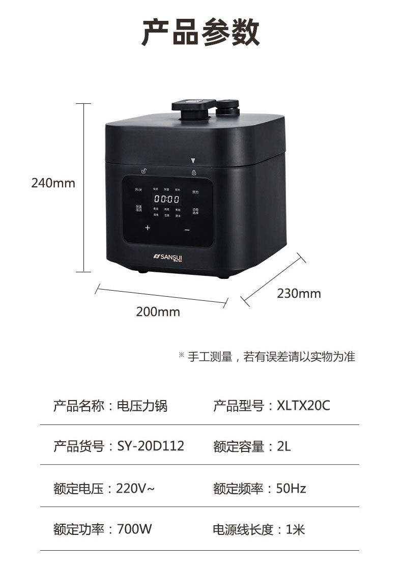 商品名称:SANSUI/山水2升电压力锅SY-20D112