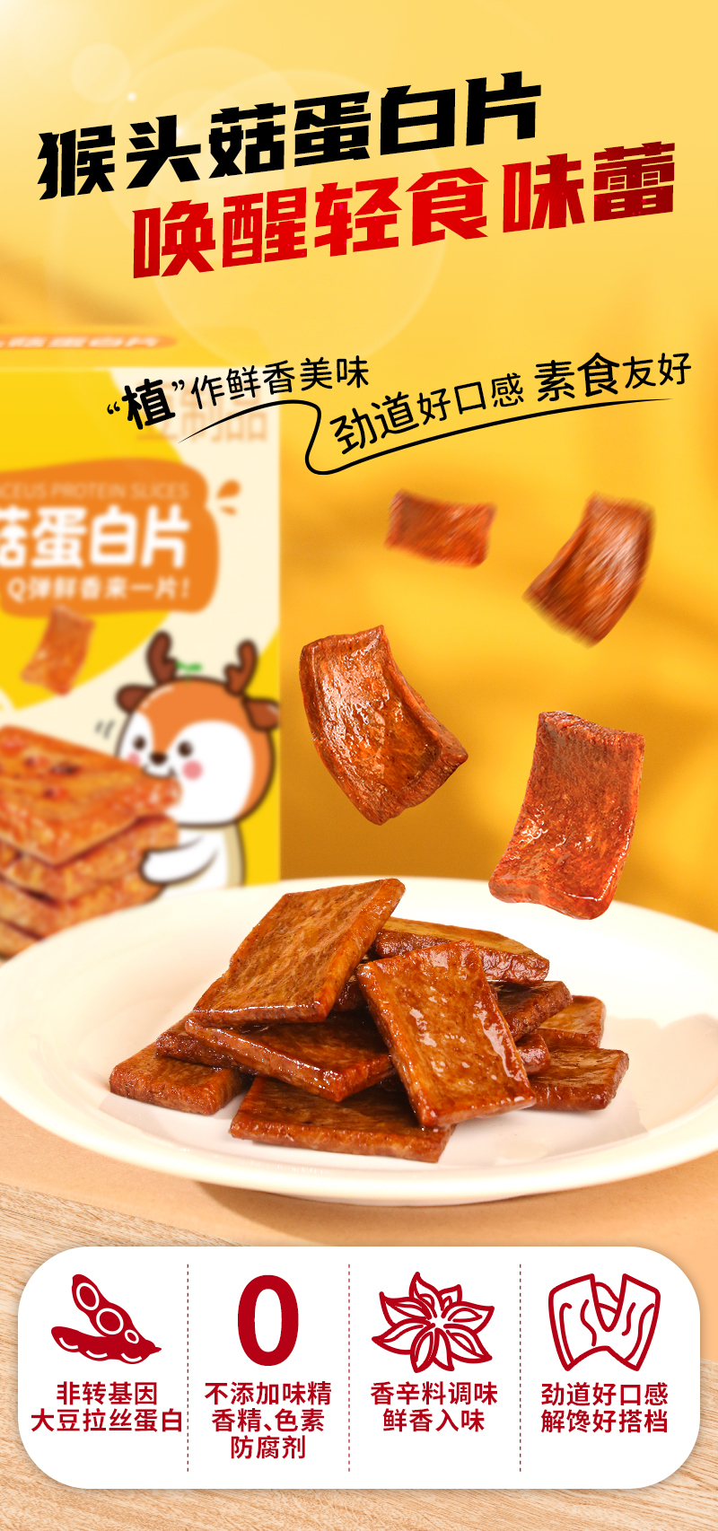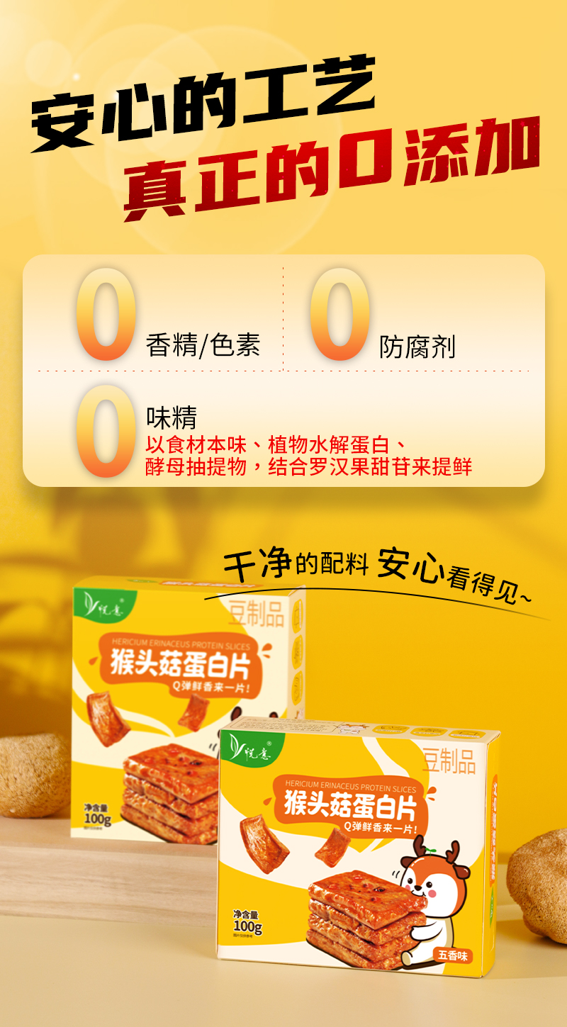 悦意五香味猴头菇蛋白片100g*3盒