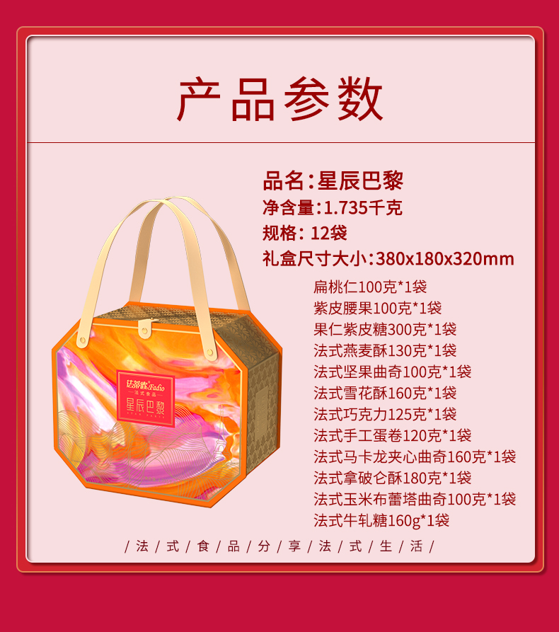 商品名称:法蒂欧星辰巴黎法式糕点坚果零食礼盒1735g