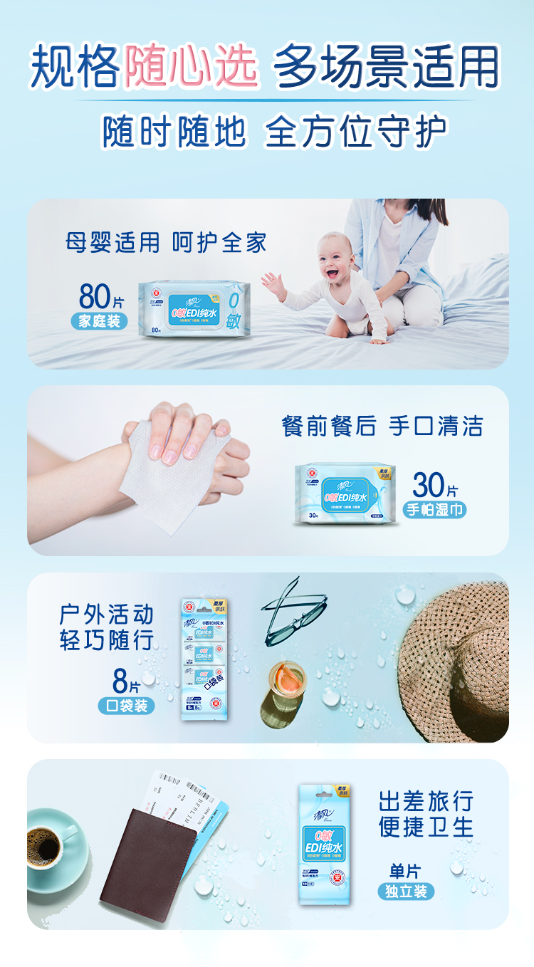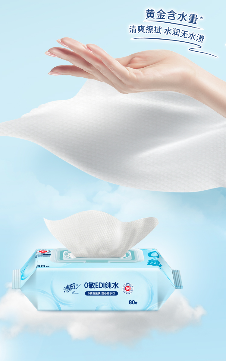 Breeze/清风EDI纯水湿巾家庭装80片*4包
