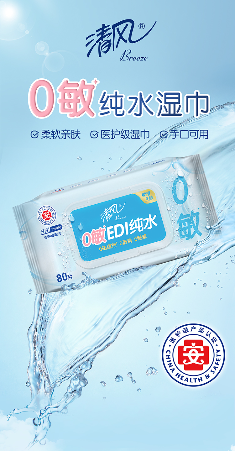 商品名称:Breeze/清风EDI纯水湿巾家庭装80片*4包