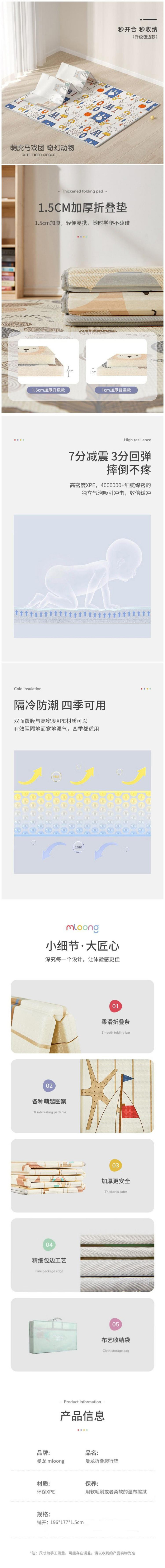 商品名称:Mloong/曼龙折叠款萌虎马戏团爬行垫196*177*1.5cm