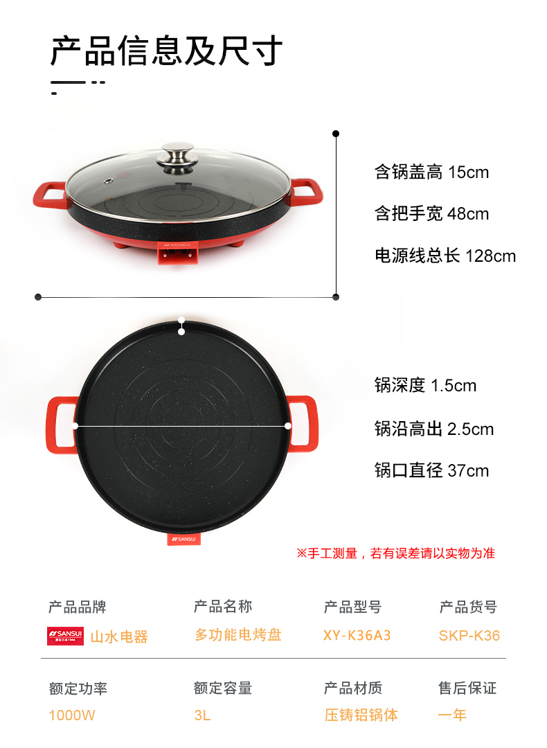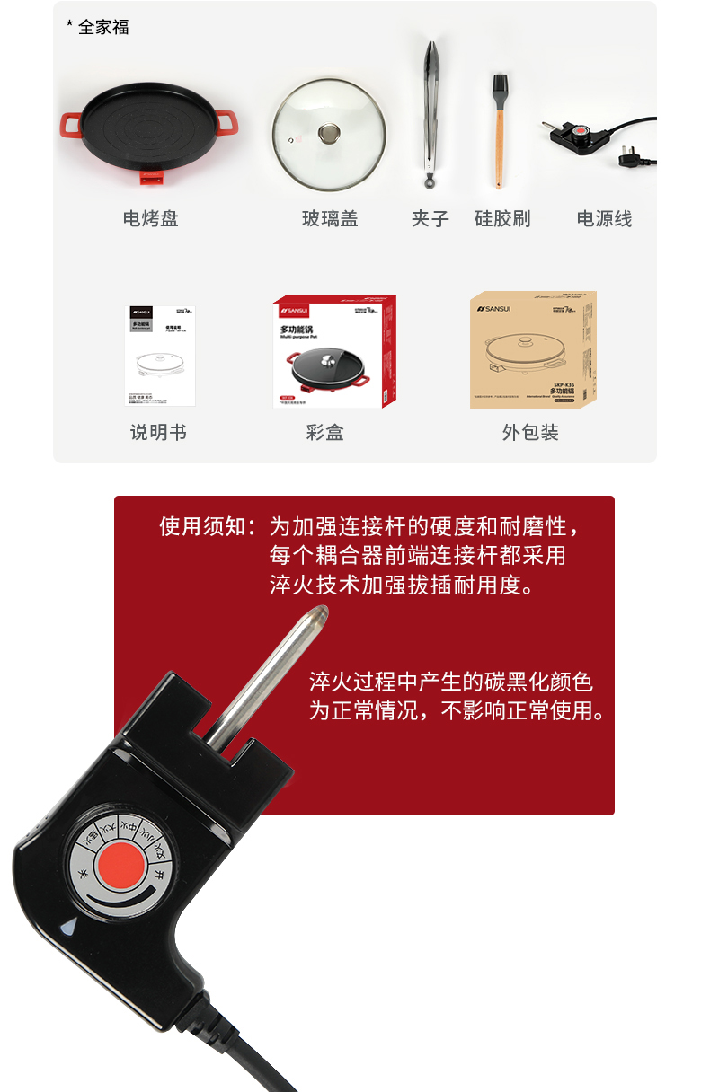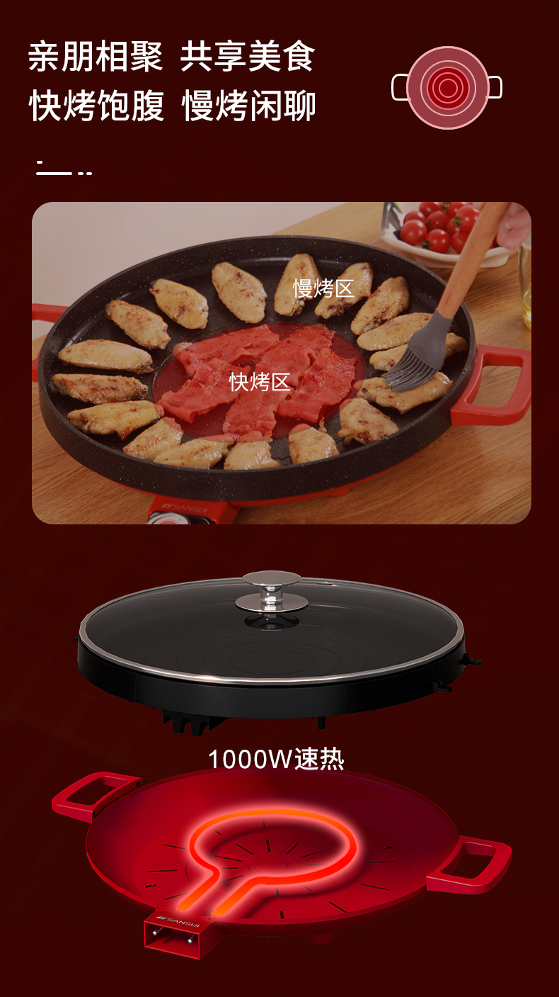 商品名称:SANSUI/山水3升多功能电烤盘-中国红SKP-K36