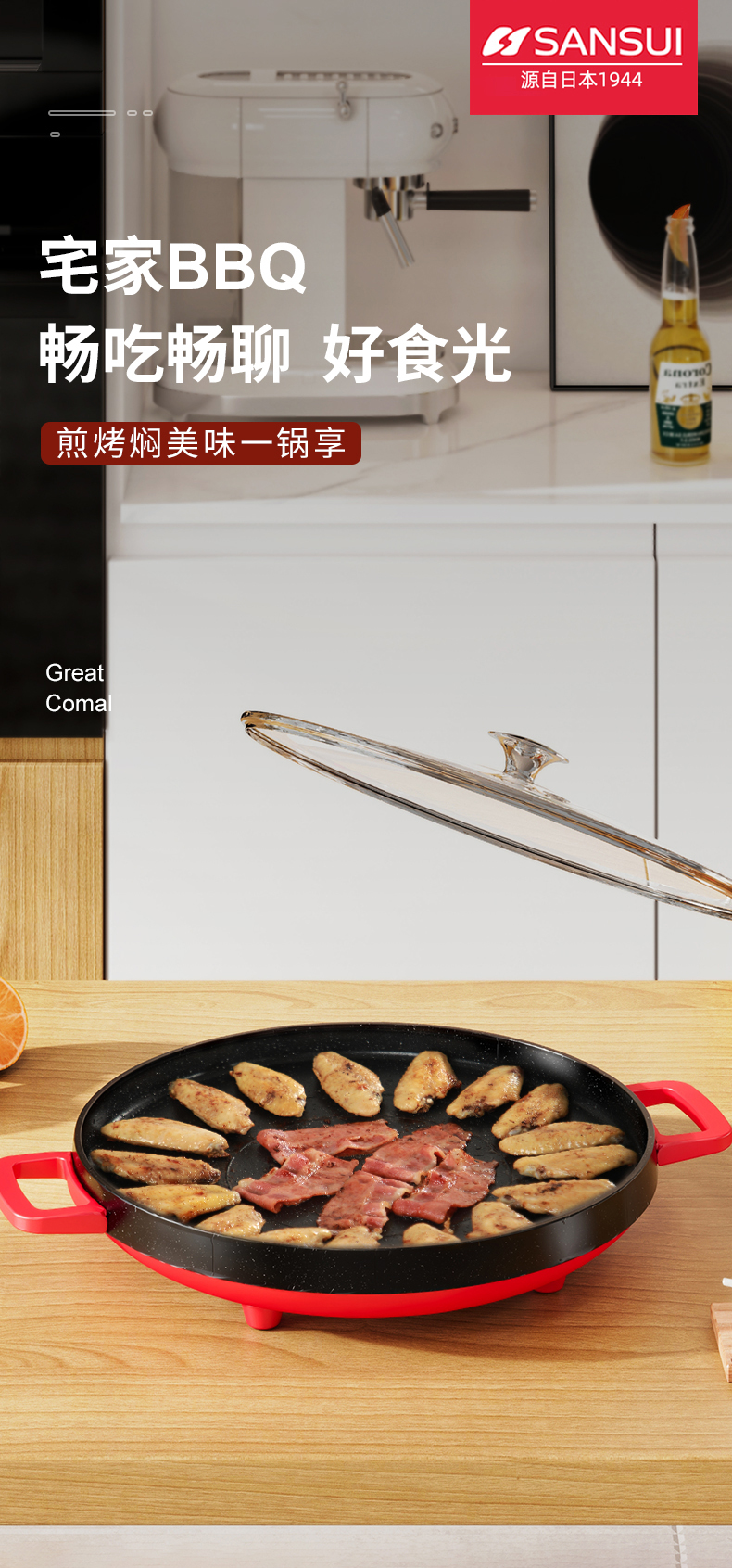SANSUI/山水3升多功能电烤盘-中国红SKP-K36