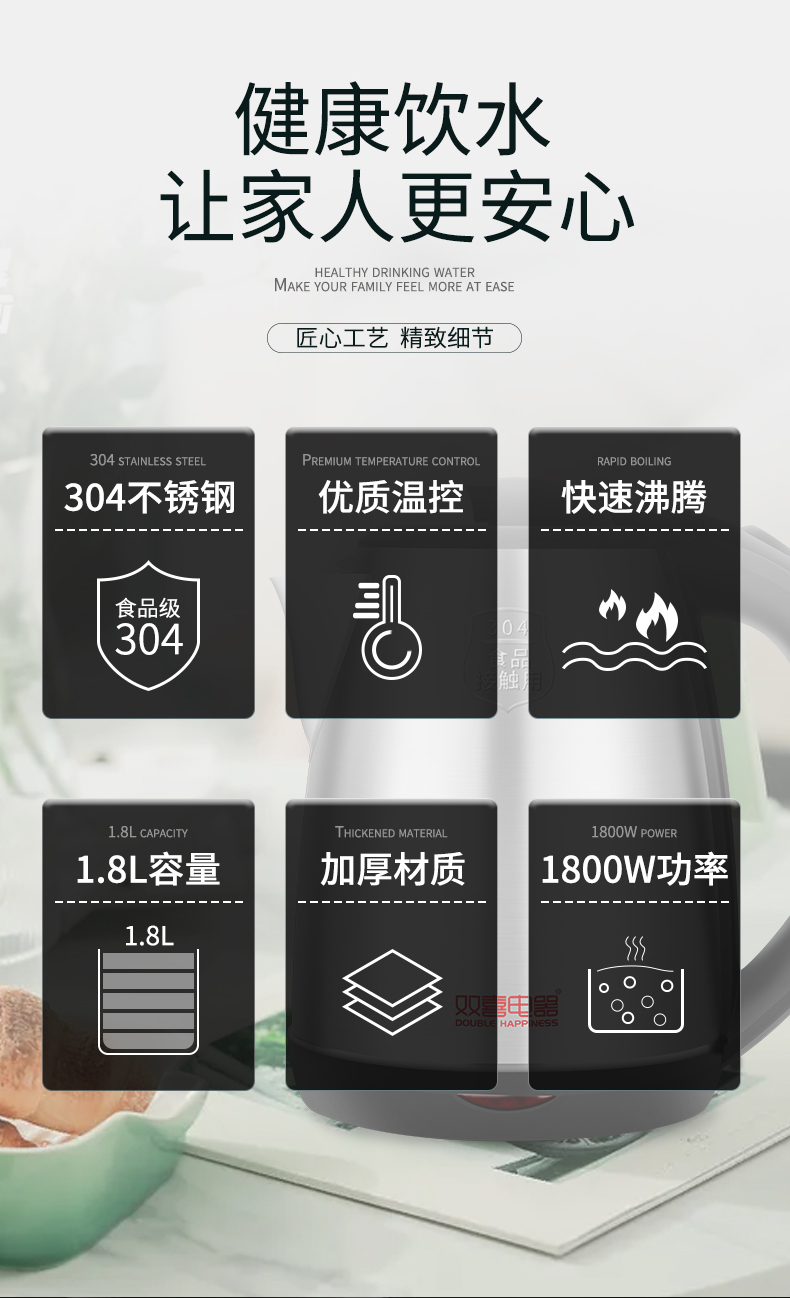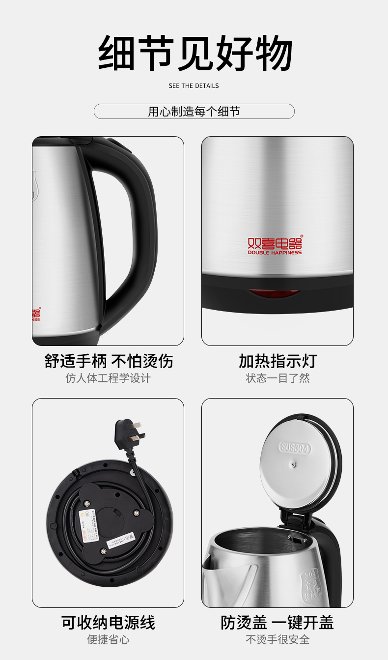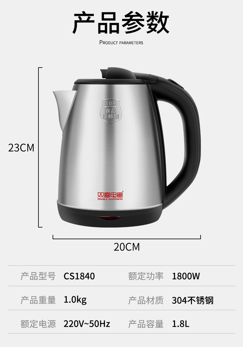商品名称:双喜电器1.8升悠朗电热水壶CS1840