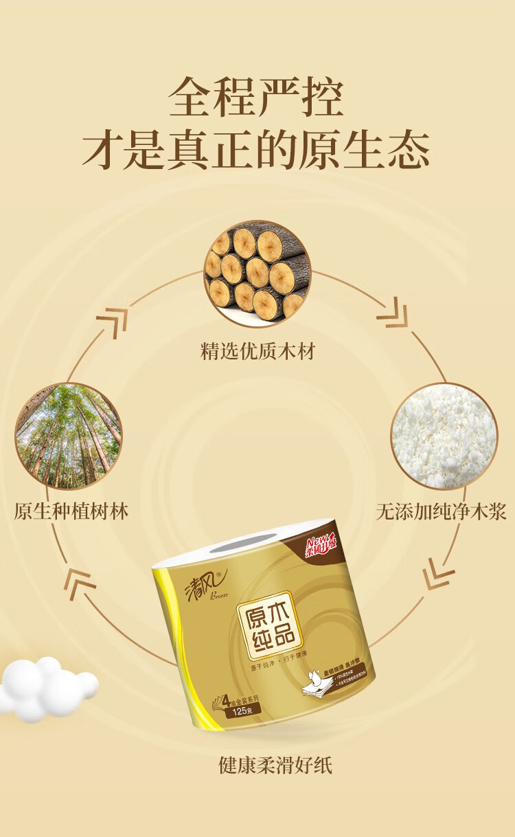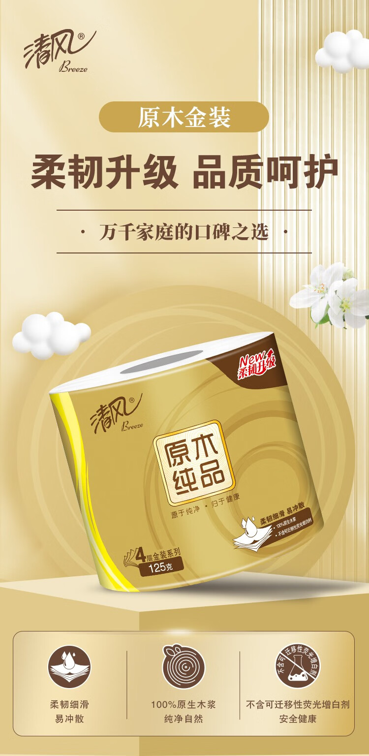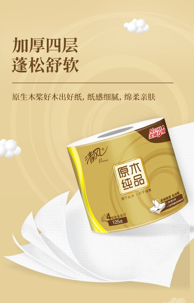 商品名称:Breeze/清风原木金装系列有芯卷纸125g10卷*2提