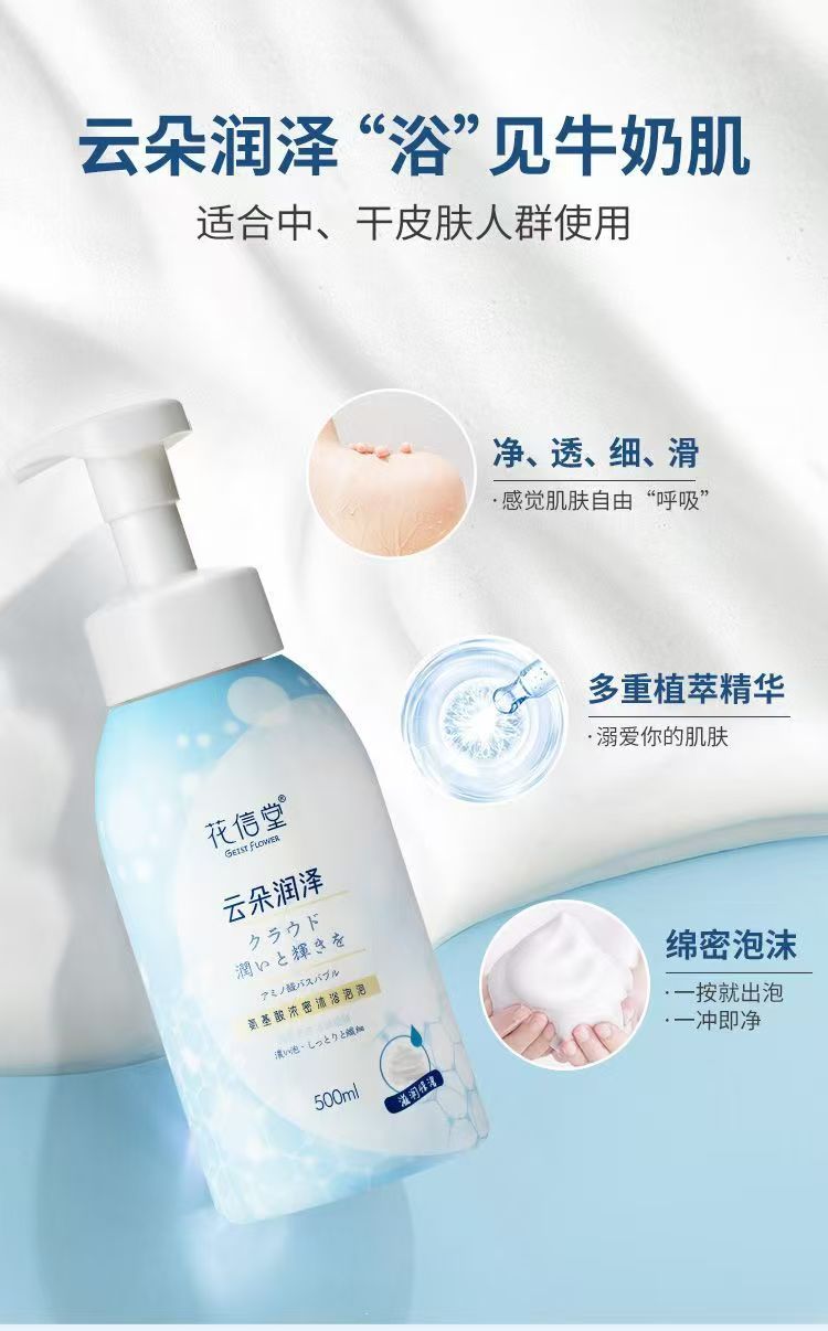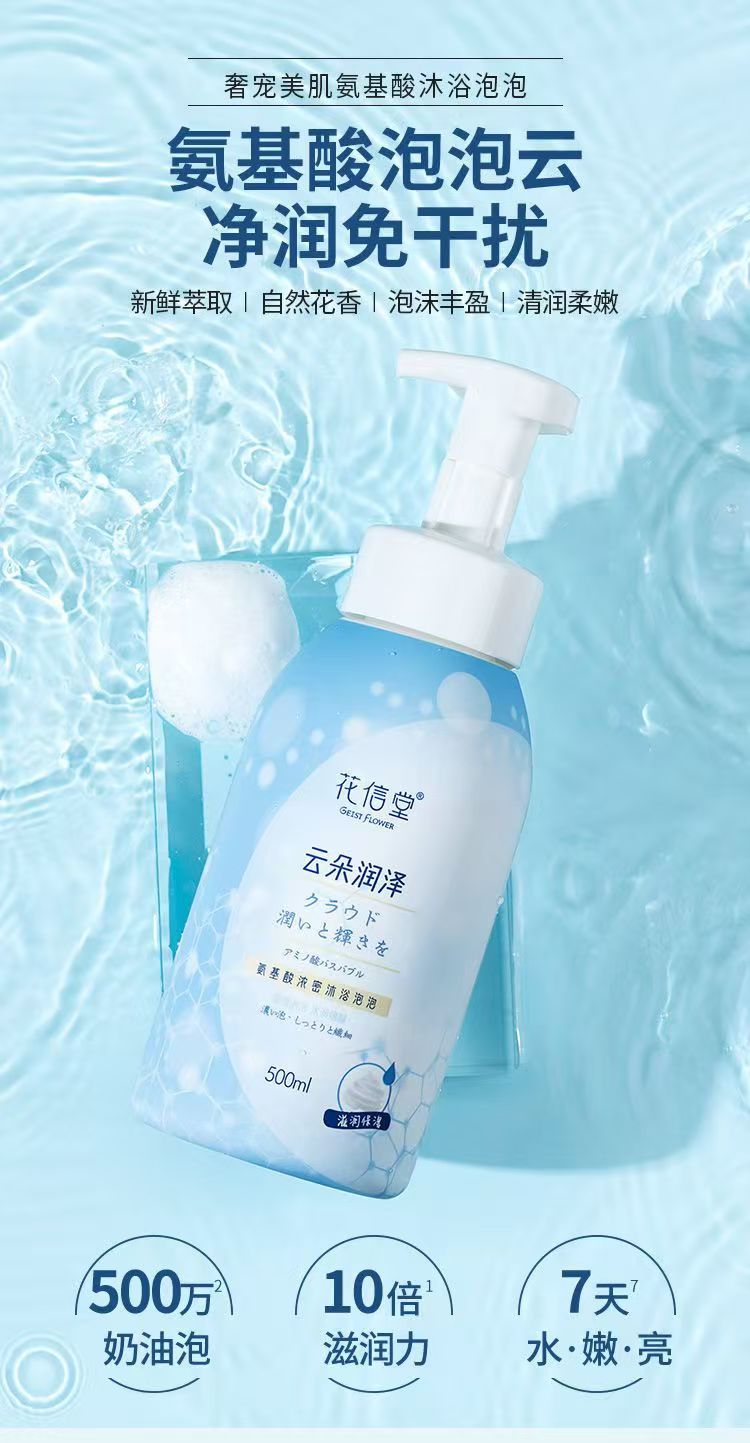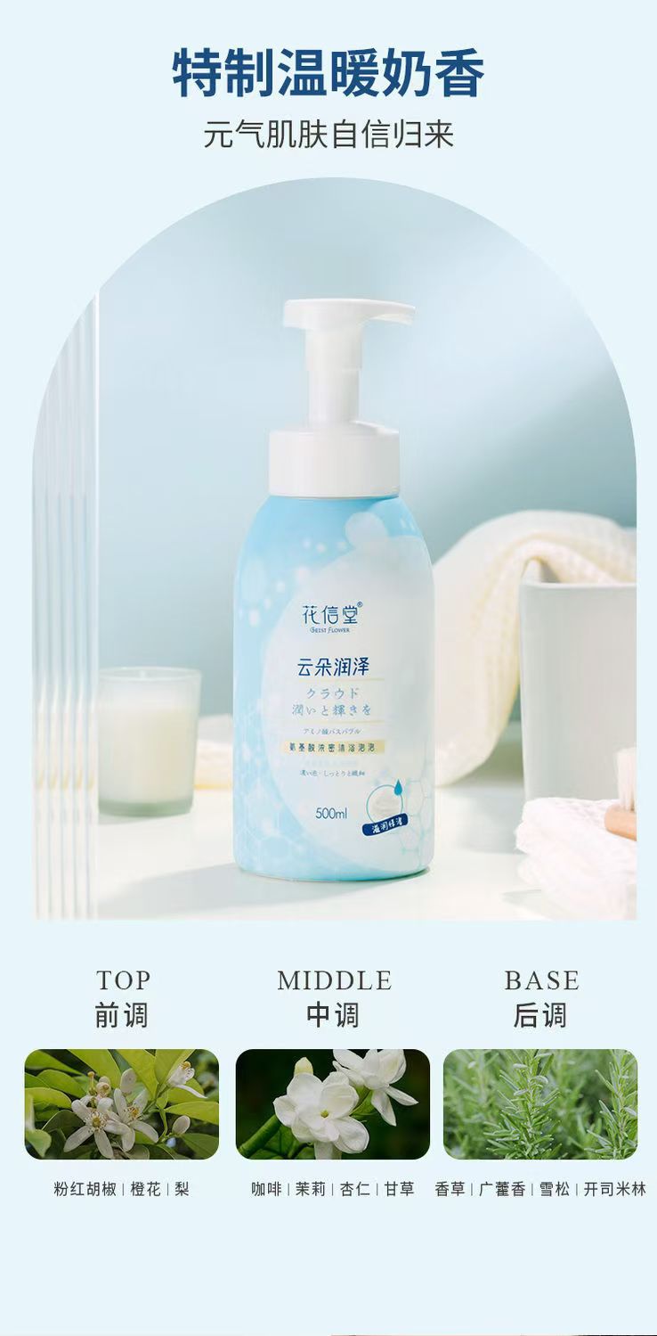 商品名称:花信堂牛奶香甜滋润保湿氨基酸浓密沐浴泡泡500ml