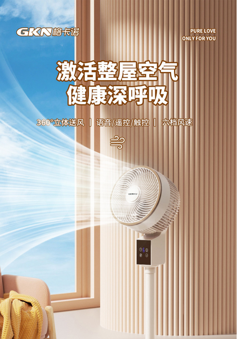 GKN/格卡诺遥控语音款立式空气循环扇GKN-FS-11