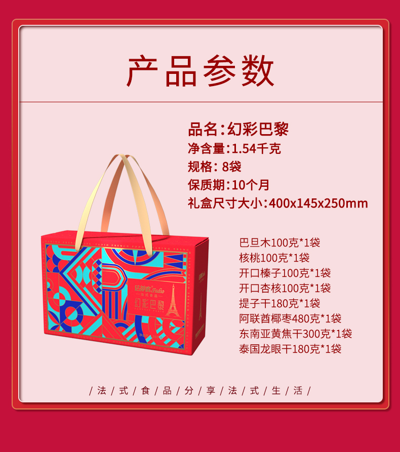 商品名称:法蒂欧幻彩巴黎坚果礼盒1540g