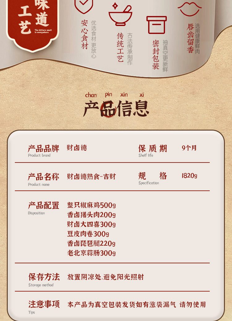 【京东/顺丰配送】柴沟堡中华老字号冷鲜熟食珍肴套餐1100g