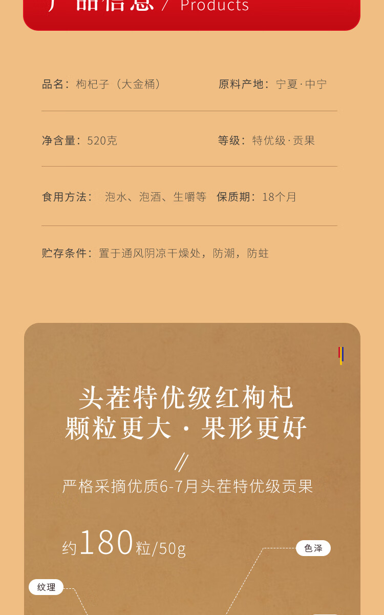 商品名称:福东海枸杞子纯宁夏贡果180粒520g