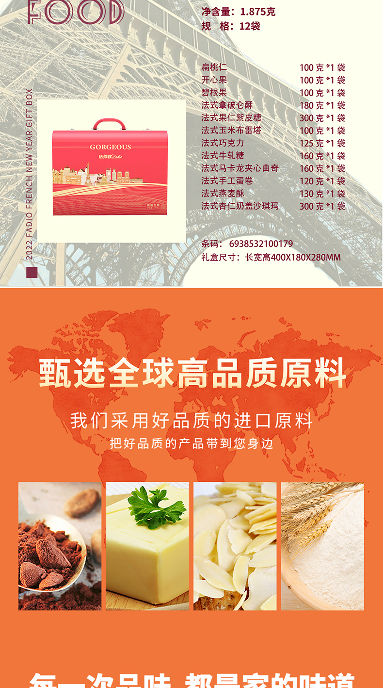 商品名称:法蒂欧绚丽巴黎法式糕点坚果零食礼盒1875g