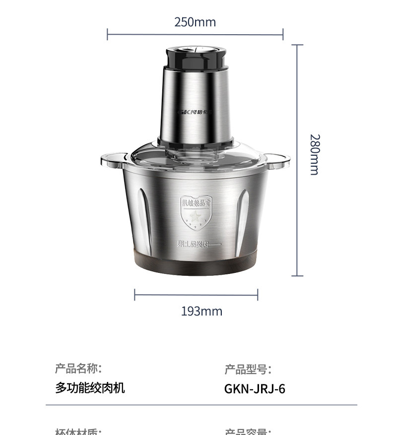 商品名称:GKN/格卡诺3升多功能绞肉机GKN-JRJ-6