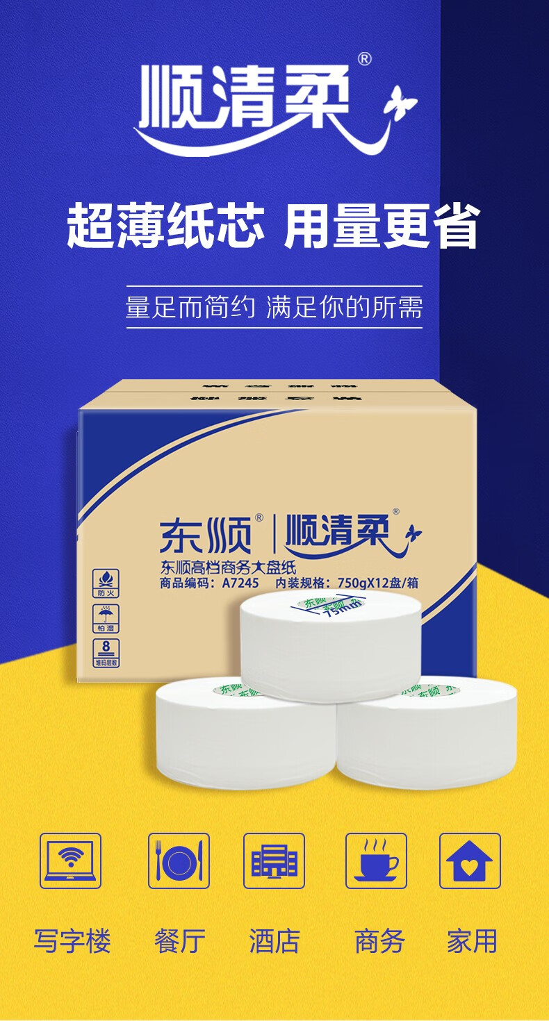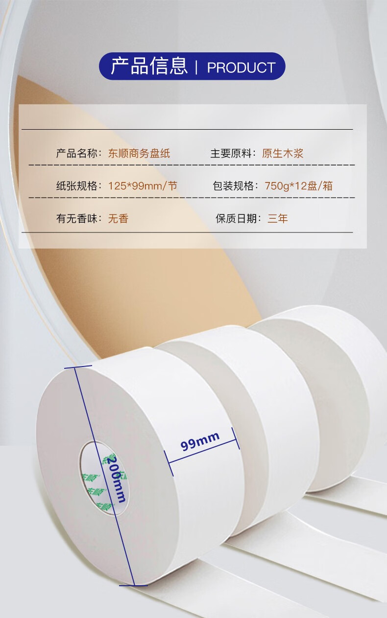 商品名称:顺清柔东顺商务盘纸整箱750g*12盘
