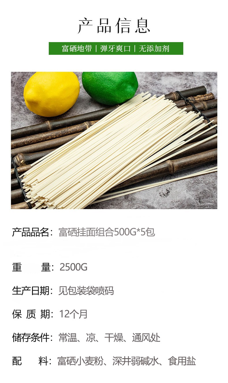 商品名称:袁氏向山纸包富硒挂面-全麦面500g*5包