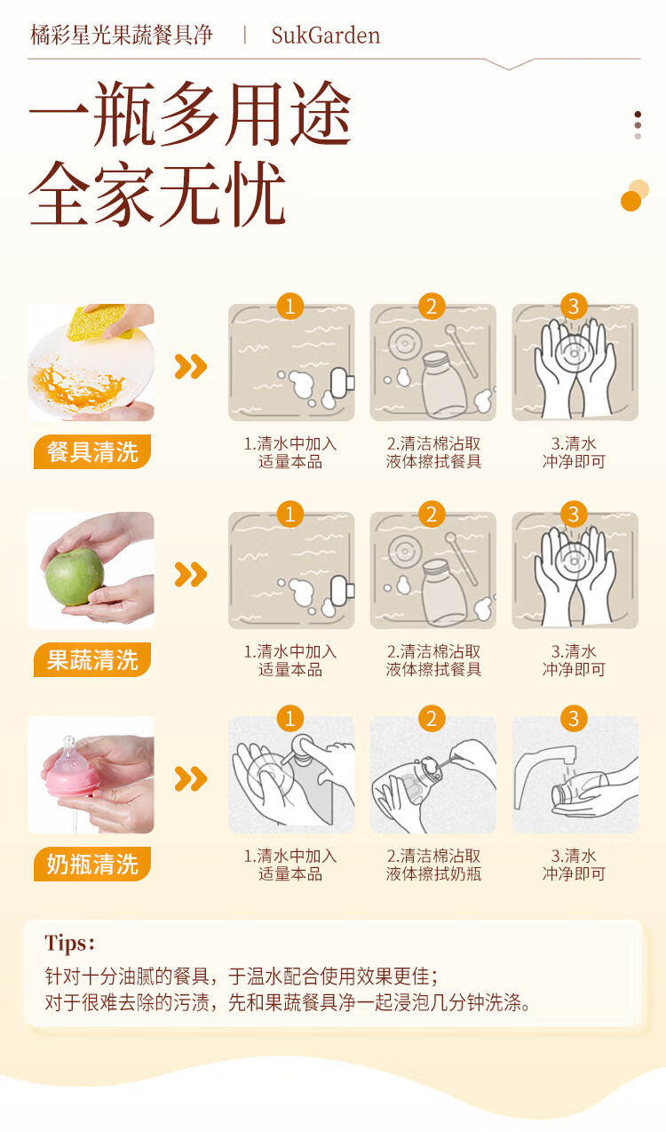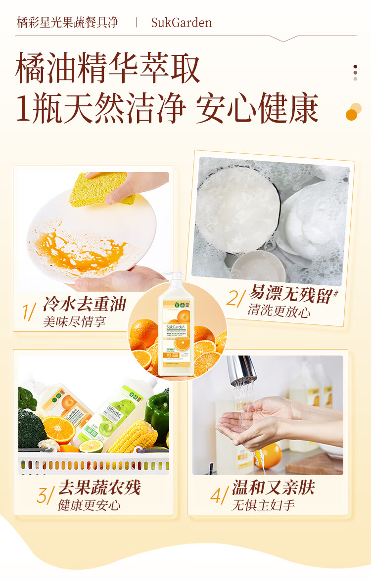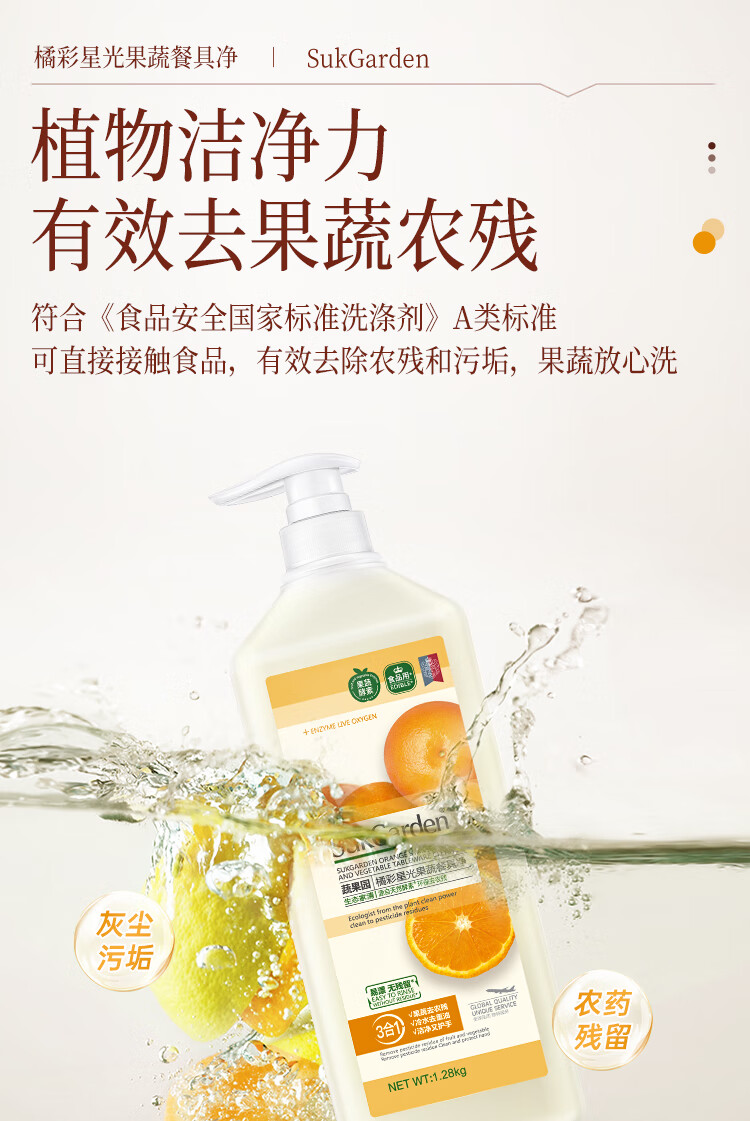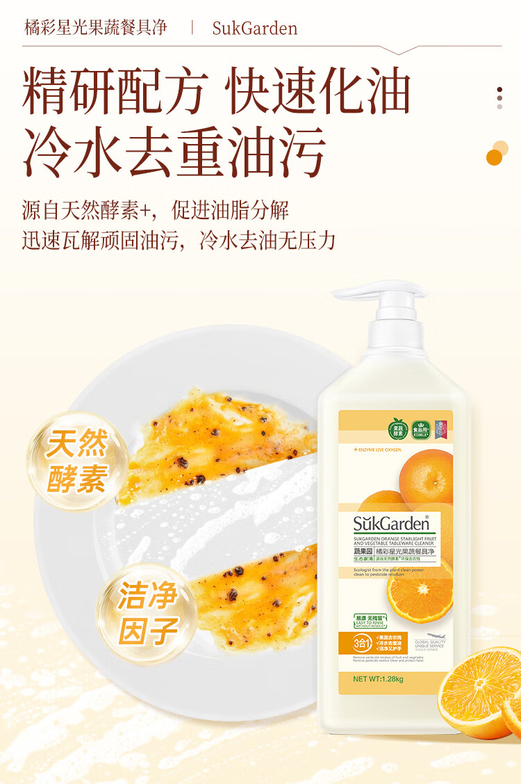 SukGarden/蔬果园橘采星光果蔬餐具净促销装1.28kg*2瓶