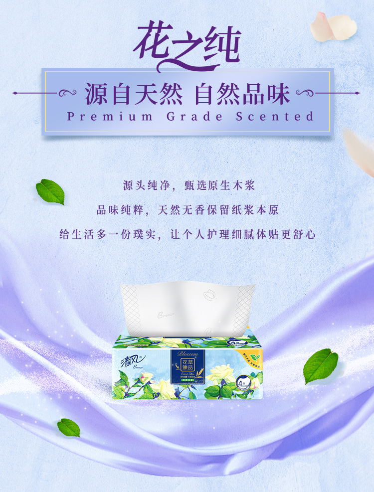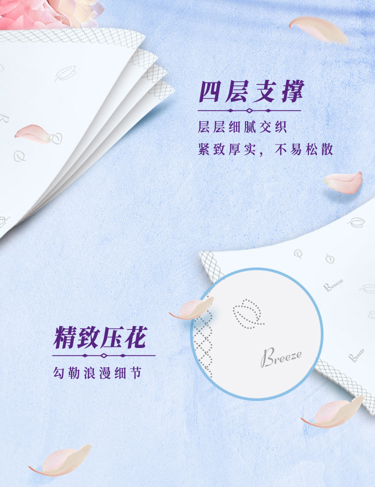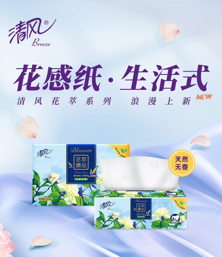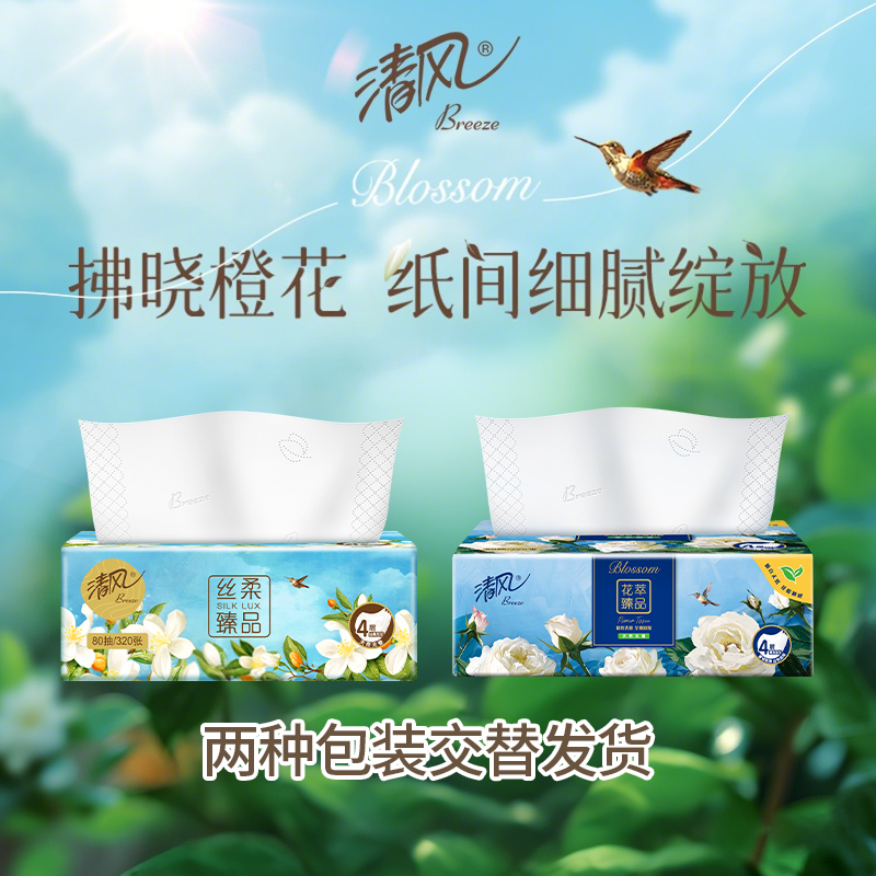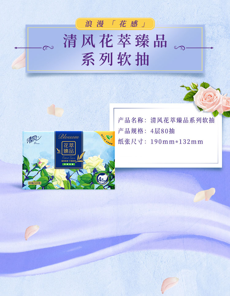 商品名称:Breeze/清风花萃臻品系列4层软抽纸整箱80抽*18包