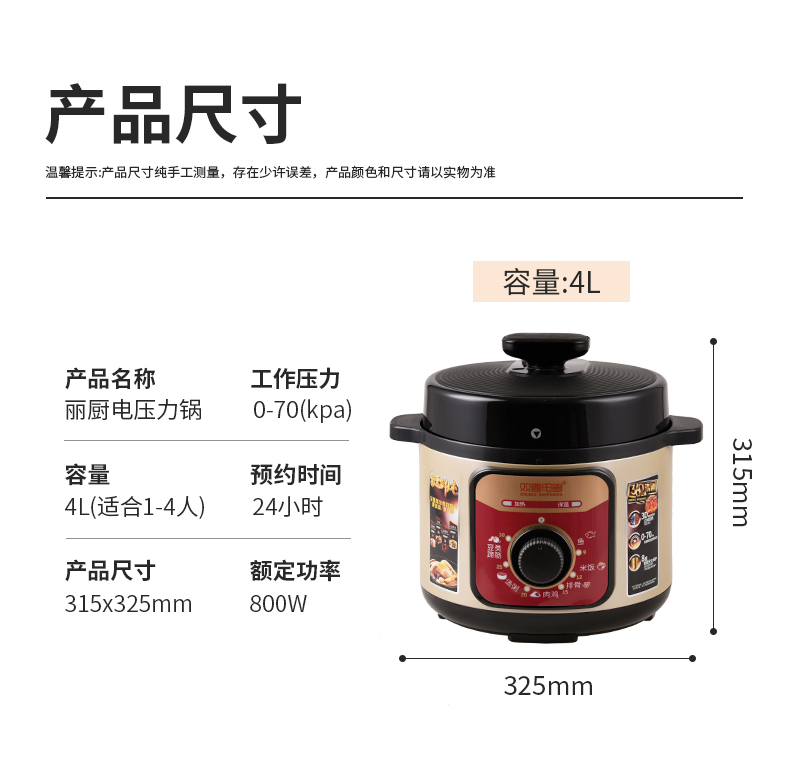 商品名称:双喜电器4升丽厨电压力锅