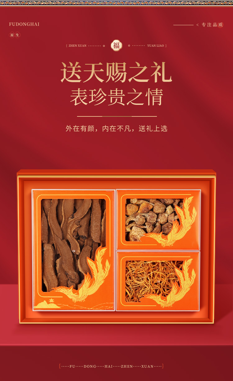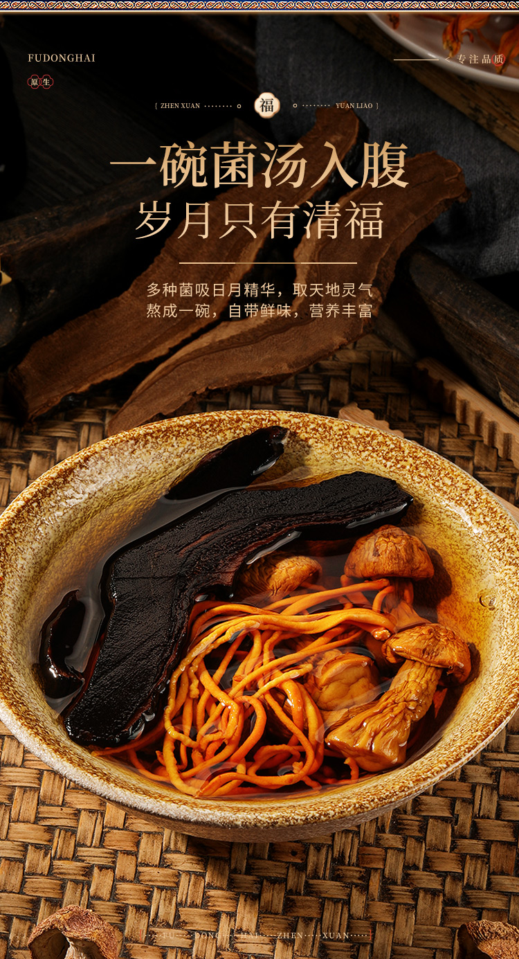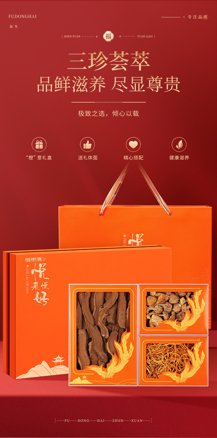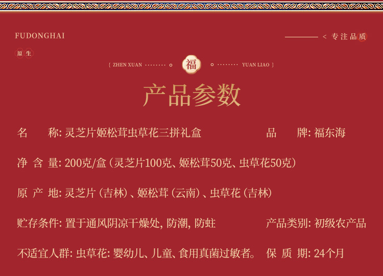 商品名称:福东海灵芝片姬松茸虫草花三拼礼盒200g