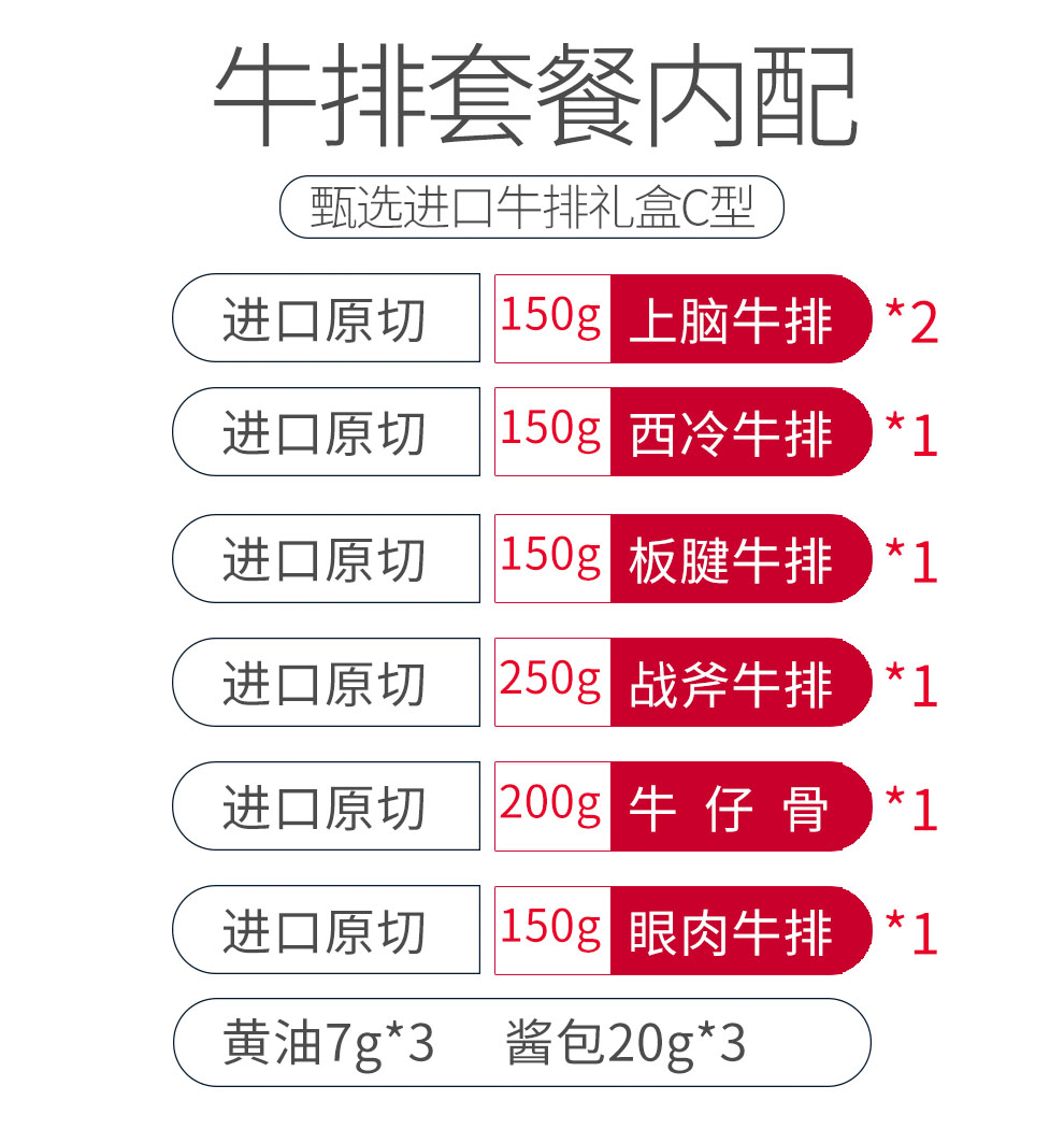商品名称:【顺丰配送】汗王部落甄选进口牛排礼盒1281g