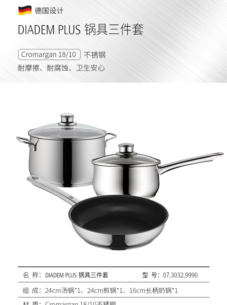 商品名称:【京东/顺丰配送】WMF/福腾宝DiademPlus系列锅具三件套