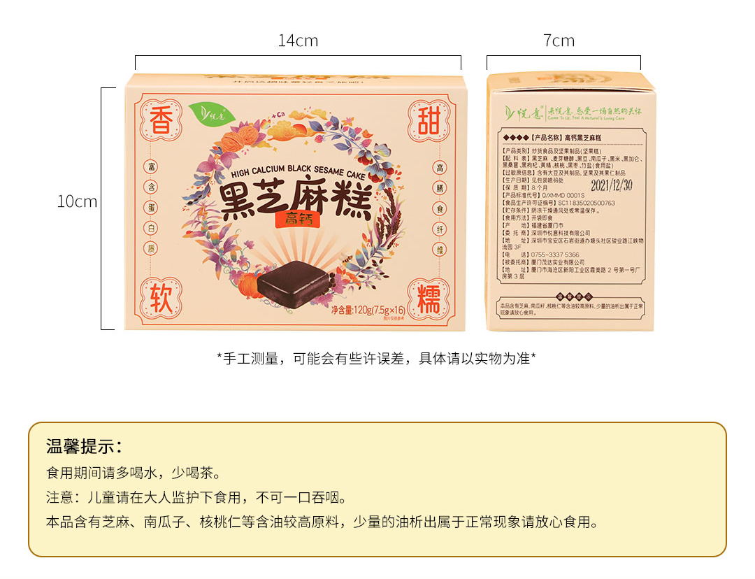 商品名称:悦意高钙黑芝麻糕120g*2盒