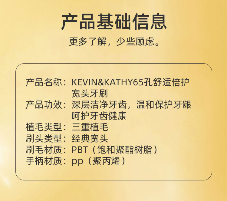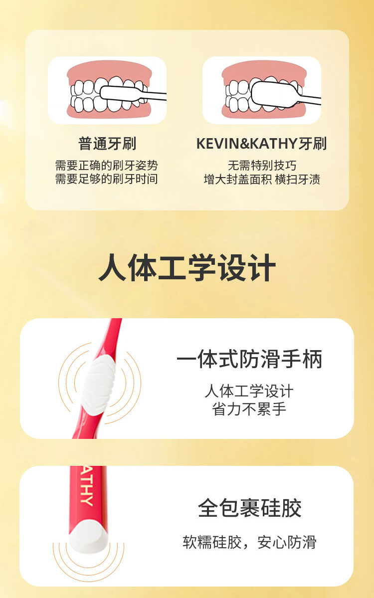 商品名称:Kevin&Kathy/凯文凯茜日式软毛65孔舒适倍护宽头牙刷