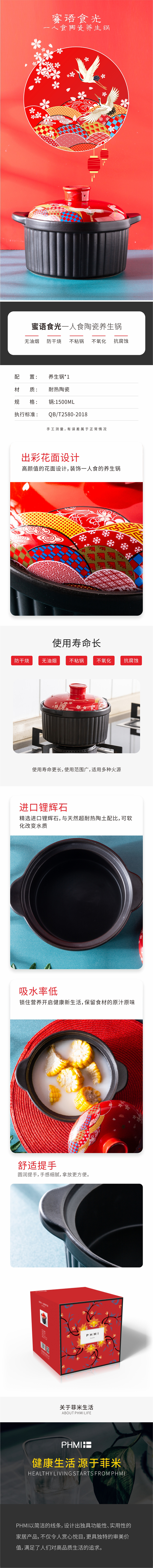 商品名称:PHMI/菲米生活1.5升蜜语食光一人食陶瓷养生锅FM-YS2111