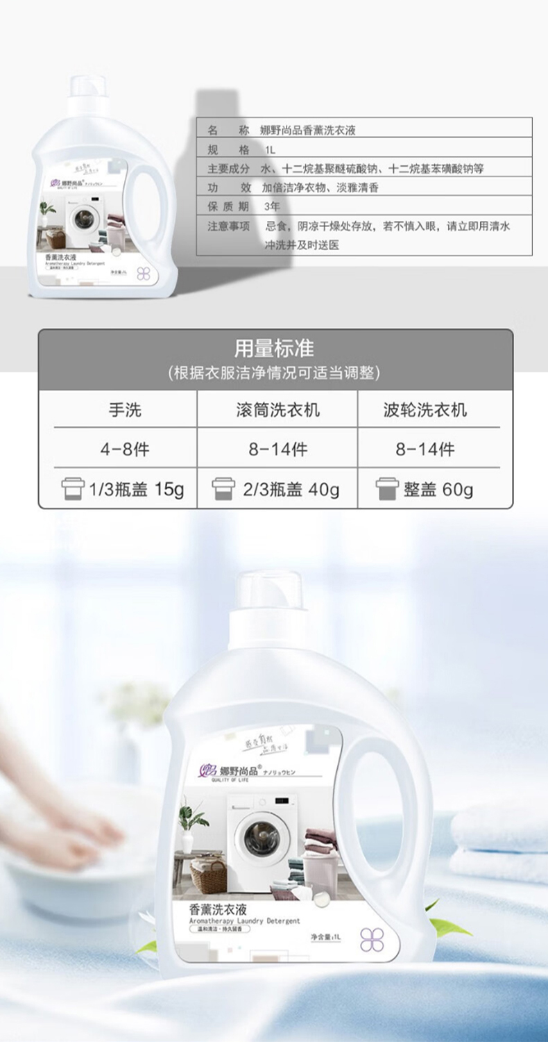 商品名称:娜野尚品香薰洁净洗衣液1L*2瓶