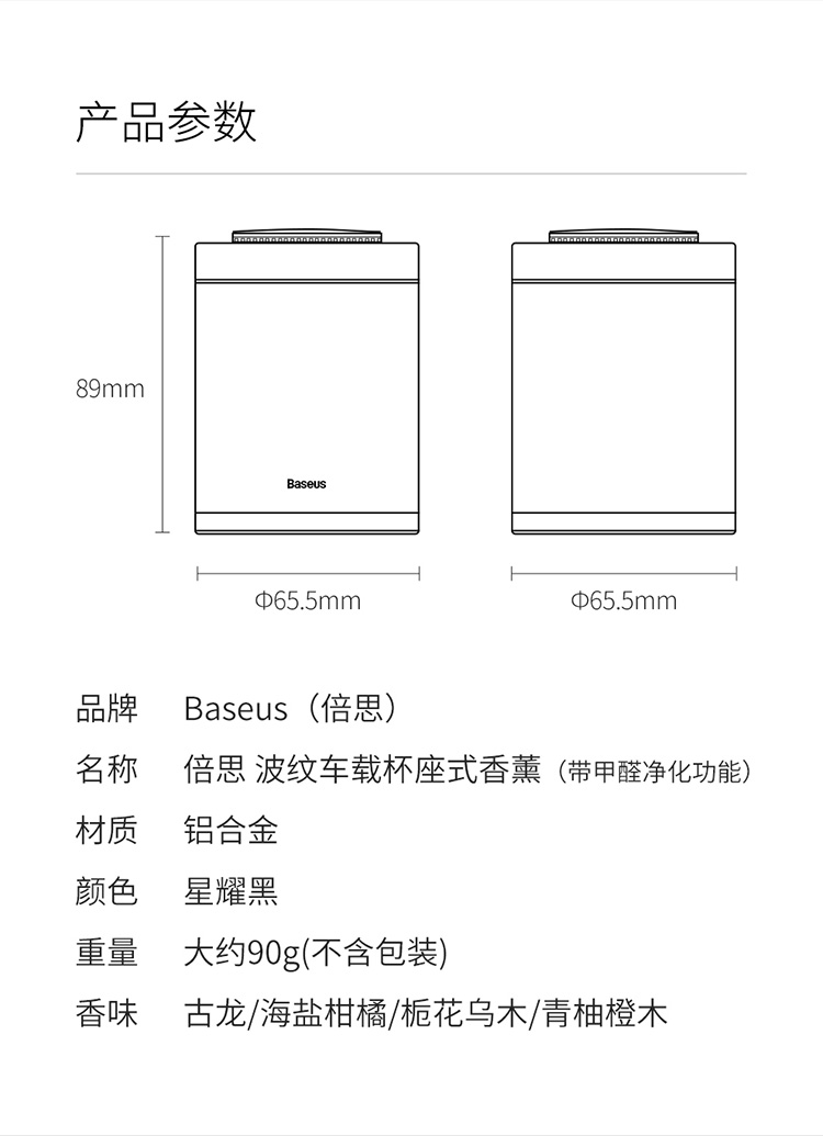 商品名称:Baseus/倍思星曜黑波纹车载杯座式香薰