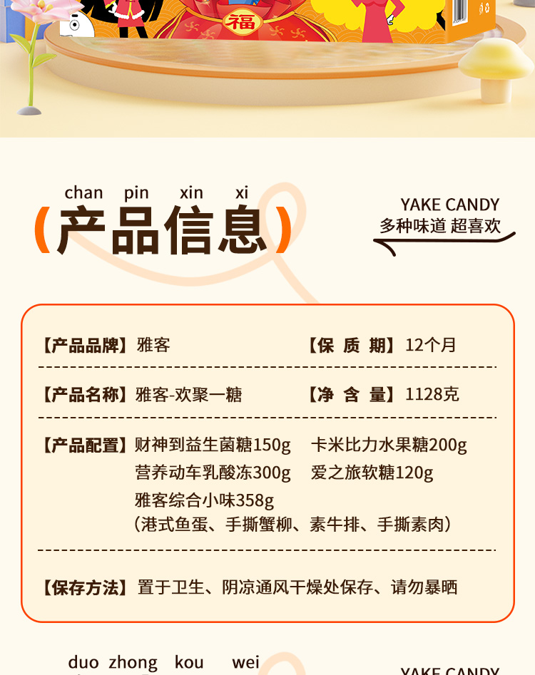 商品名称:雅客欢聚一糖糖果零食礼盒1128g