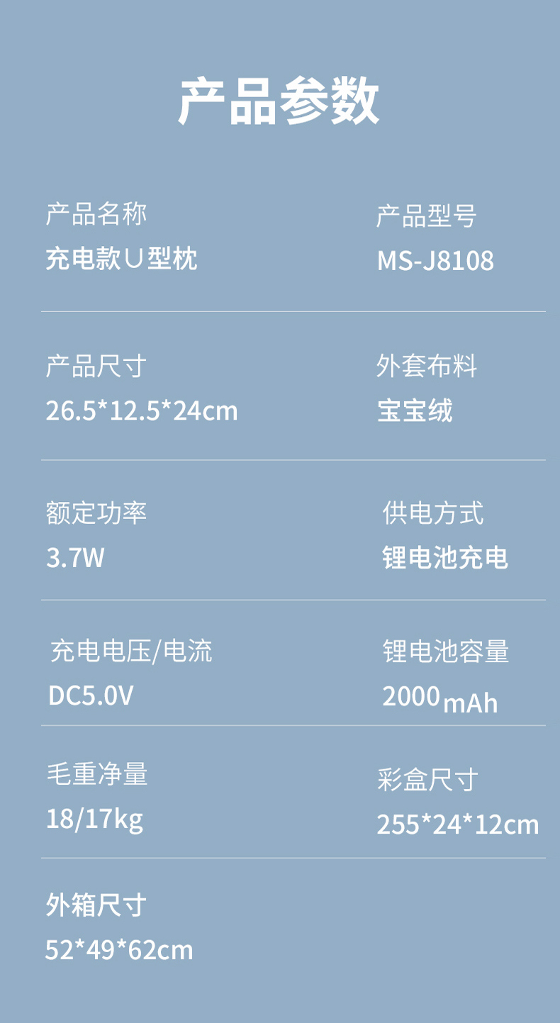 商品名称:Misida/美仕达充电款U型护颈按摩器MS-J8108