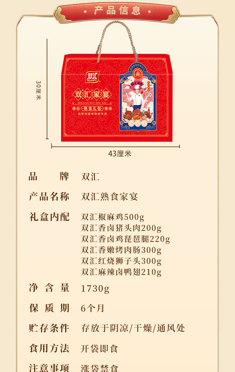 商品名称:【顺丰配送】双汇家宴熟食礼盒1730g