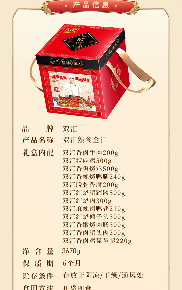 商品名称:【顺丰配送】双汇全汇熟食礼盒3670g