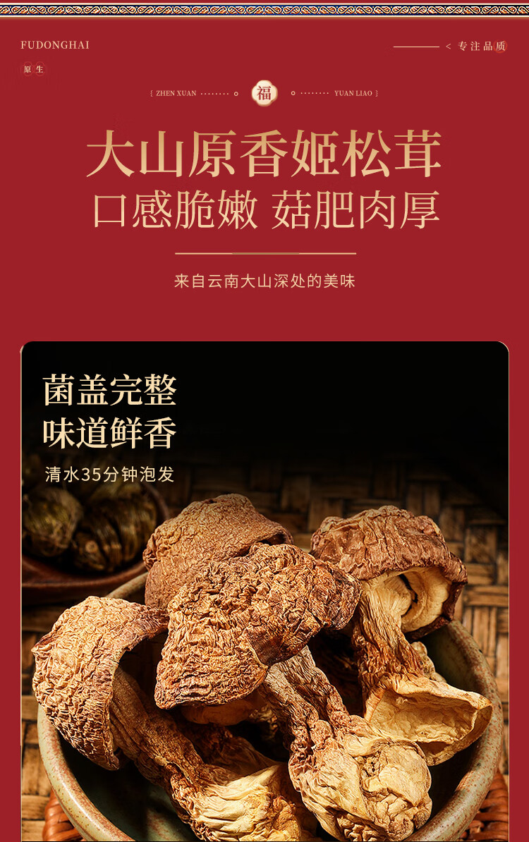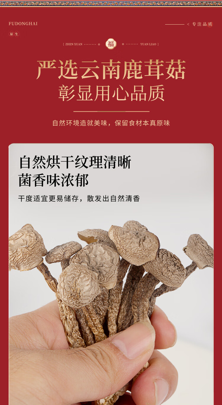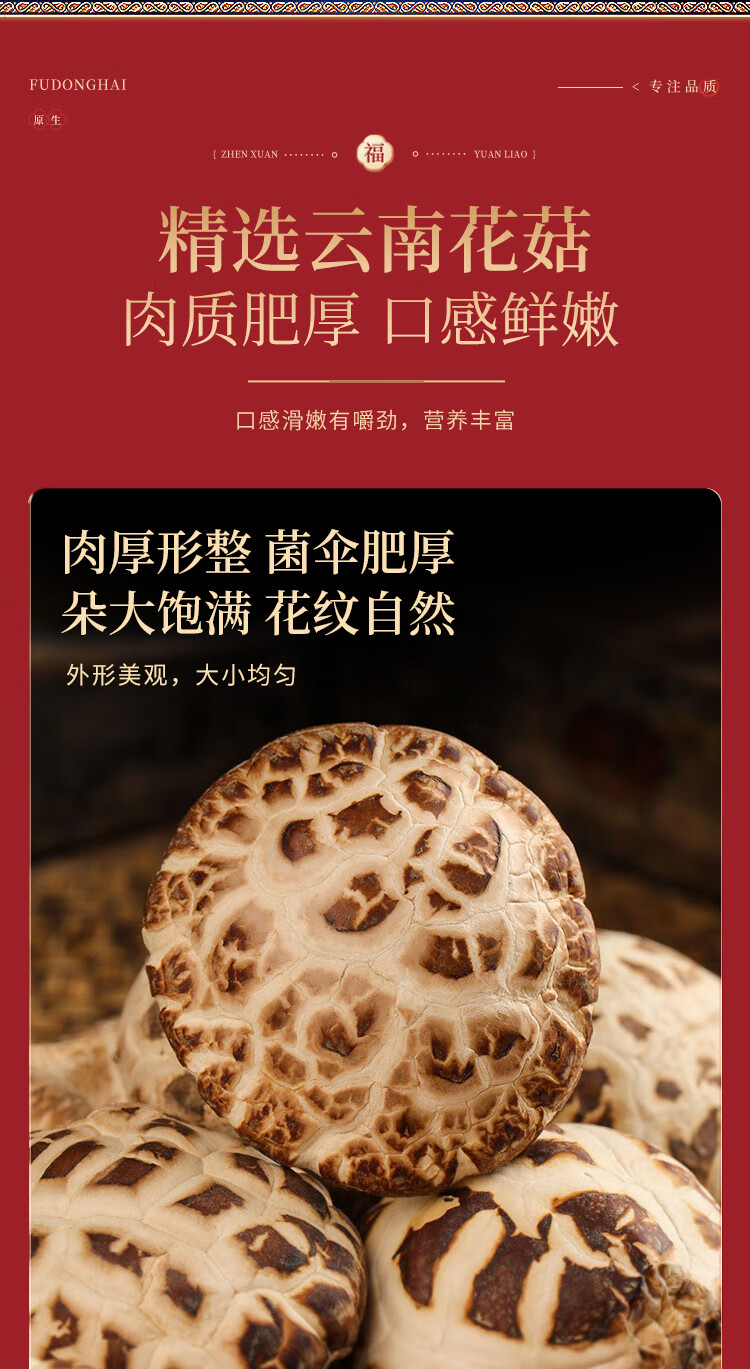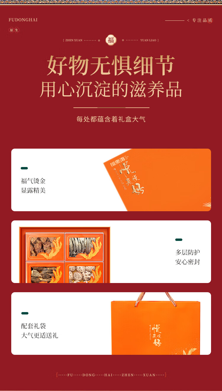 商品名称:福东海羊肚菌姬松茸鹿茸菇花菇四拼礼盒135g