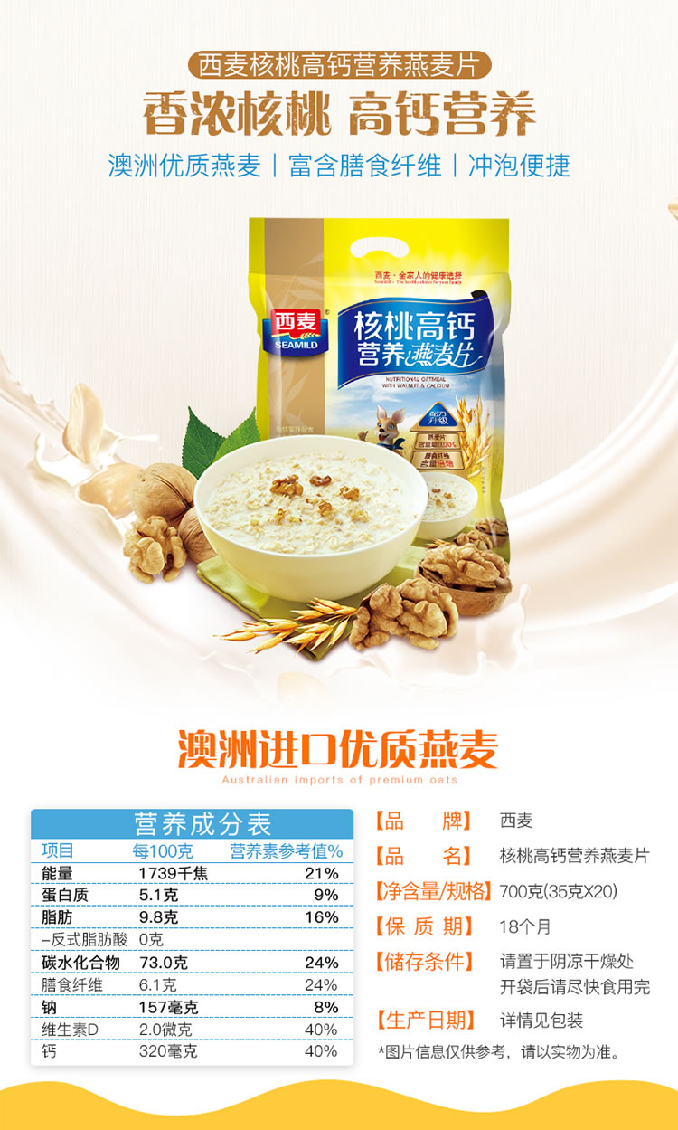 商品名称:SEAMILD/西麦核桃高钙营养燕麦片700g