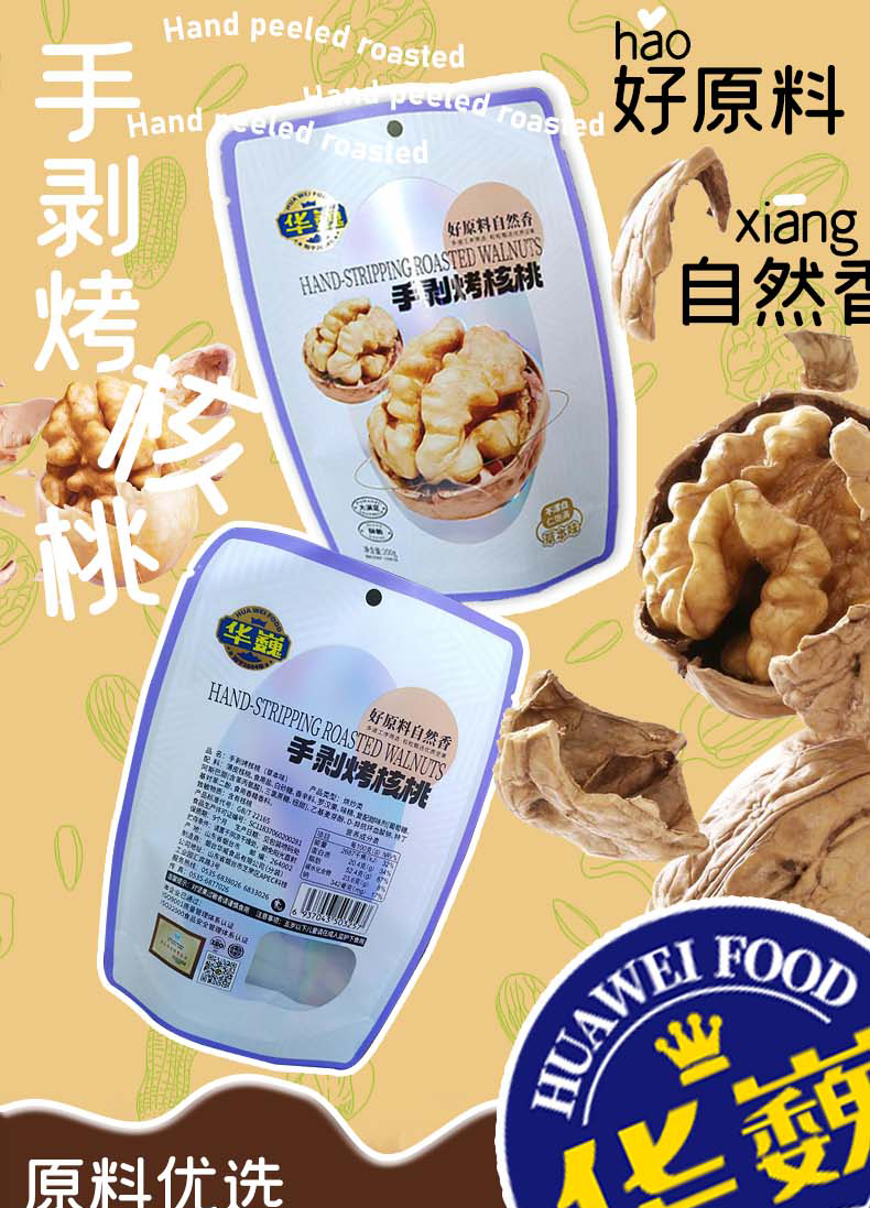 商品名称:HUAWEI FOOD/华巍手剥烤核桃-草本味200g*3袋