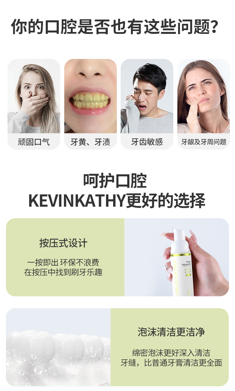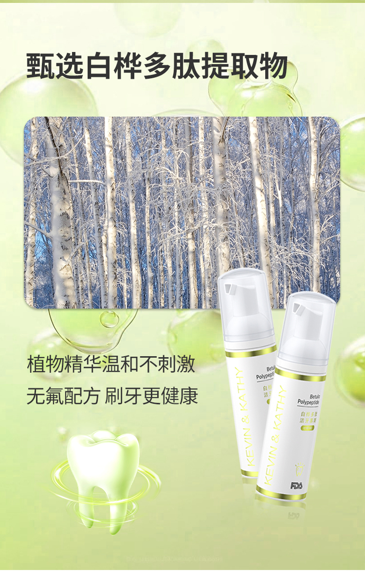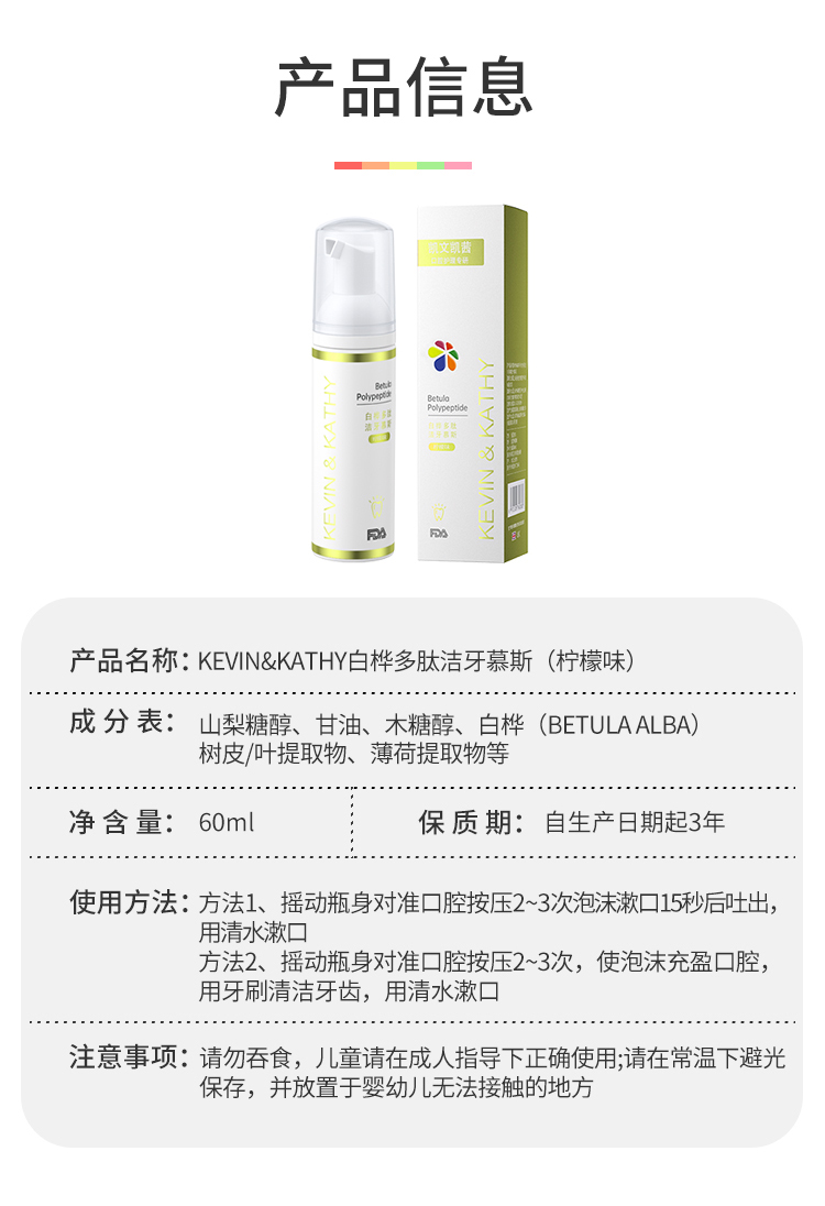 商品名称:Kevin&Kathy/凯文凯茜白桦多肽洁牙慕斯-柠檬味