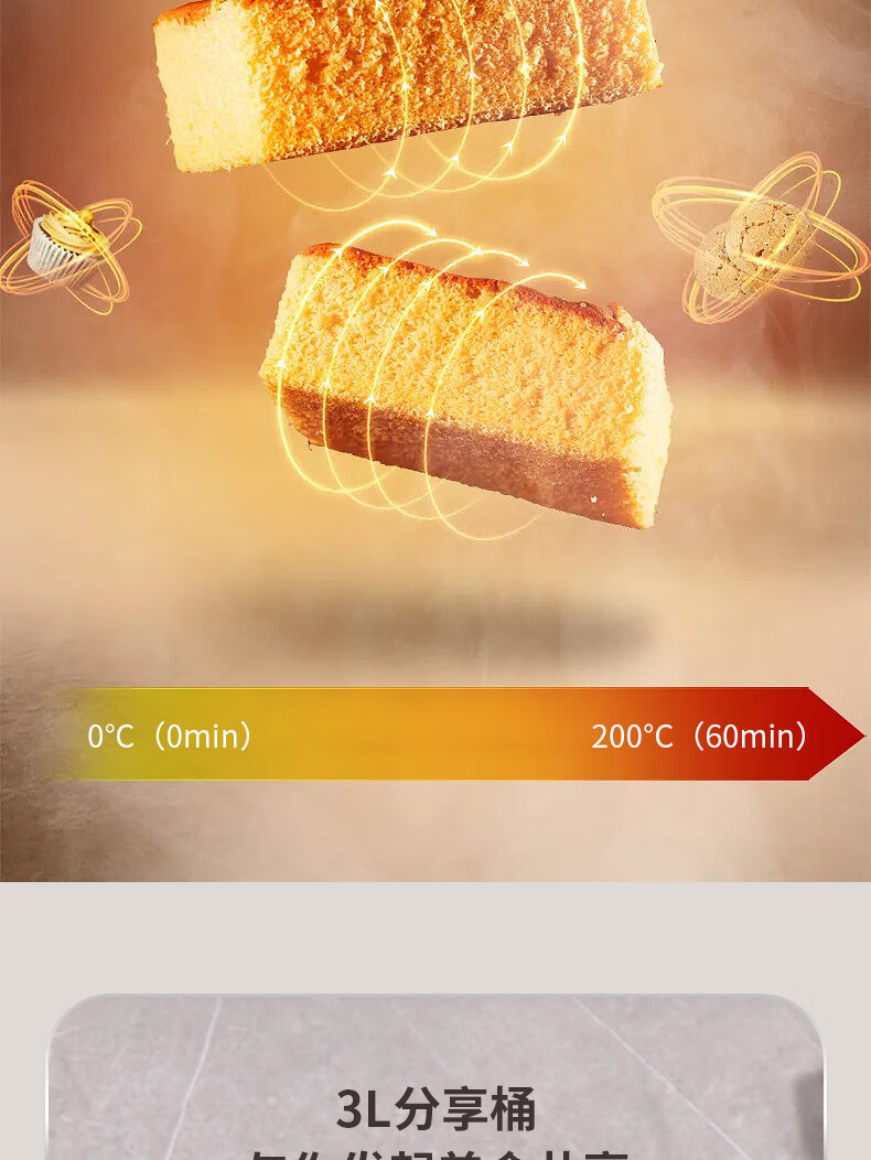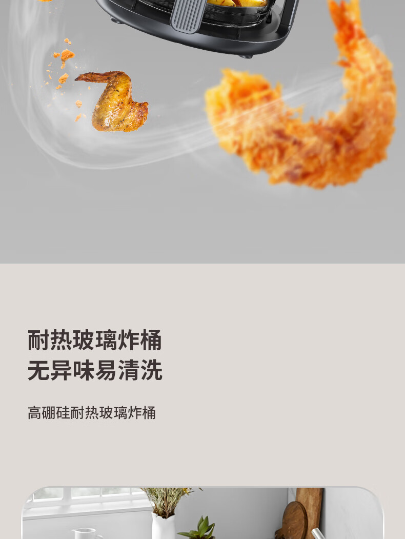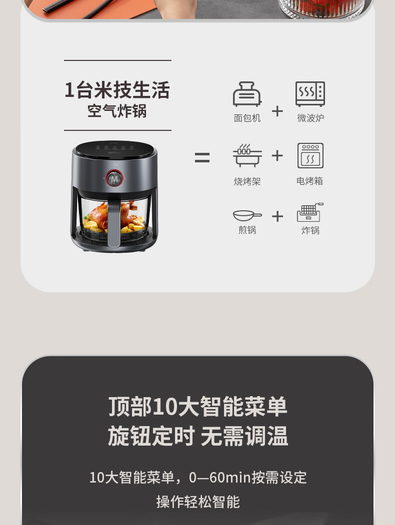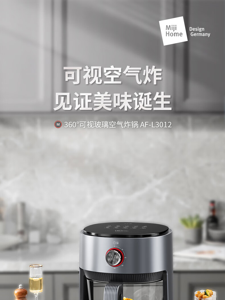 商品名称:MIJI/米技3升360°可视玻璃空气炸锅AF-L3012