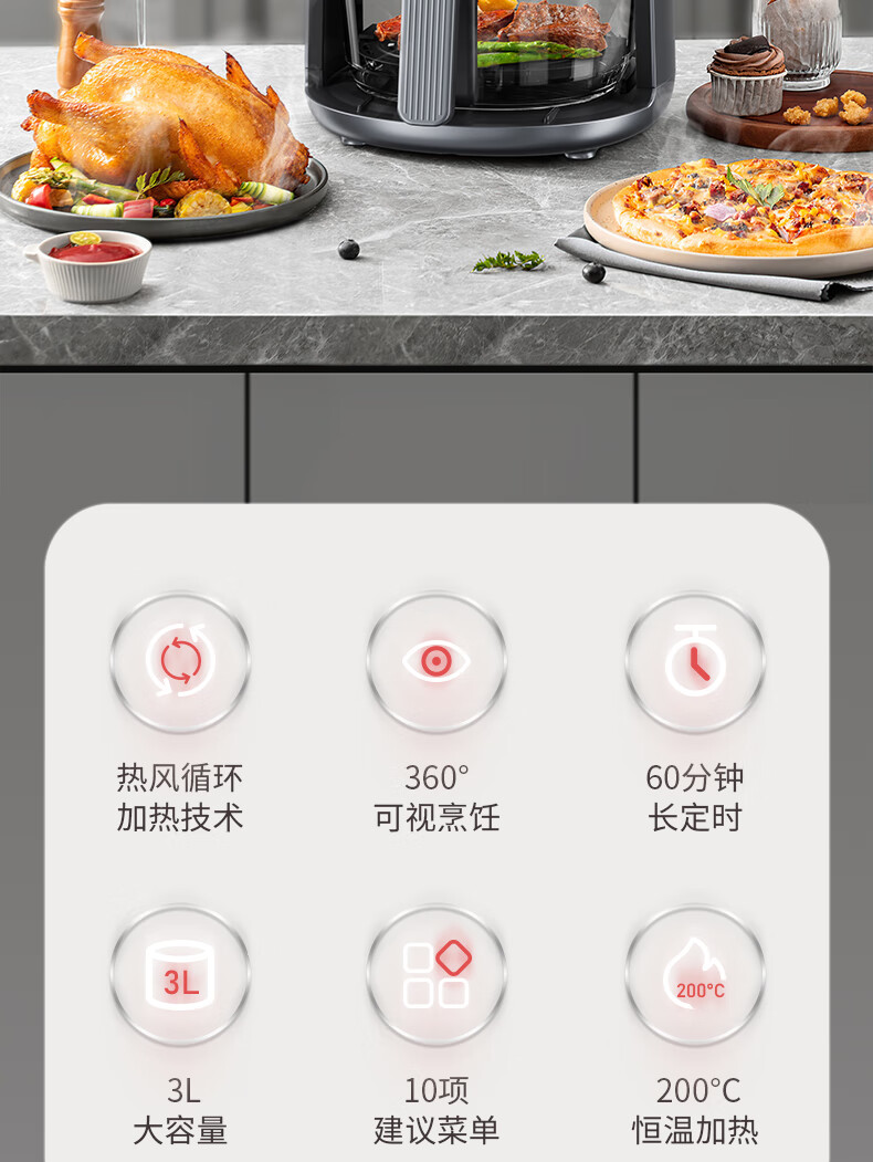 MIJI/米技3升360°可视玻璃空气炸锅AF-L3012