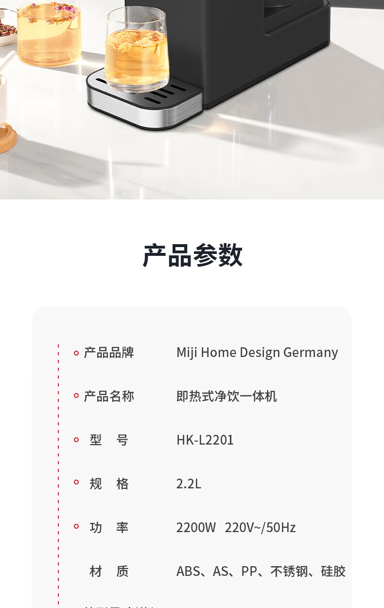 商品名称:Miji/米技2.2升即热式净饮一体机HK-L2201