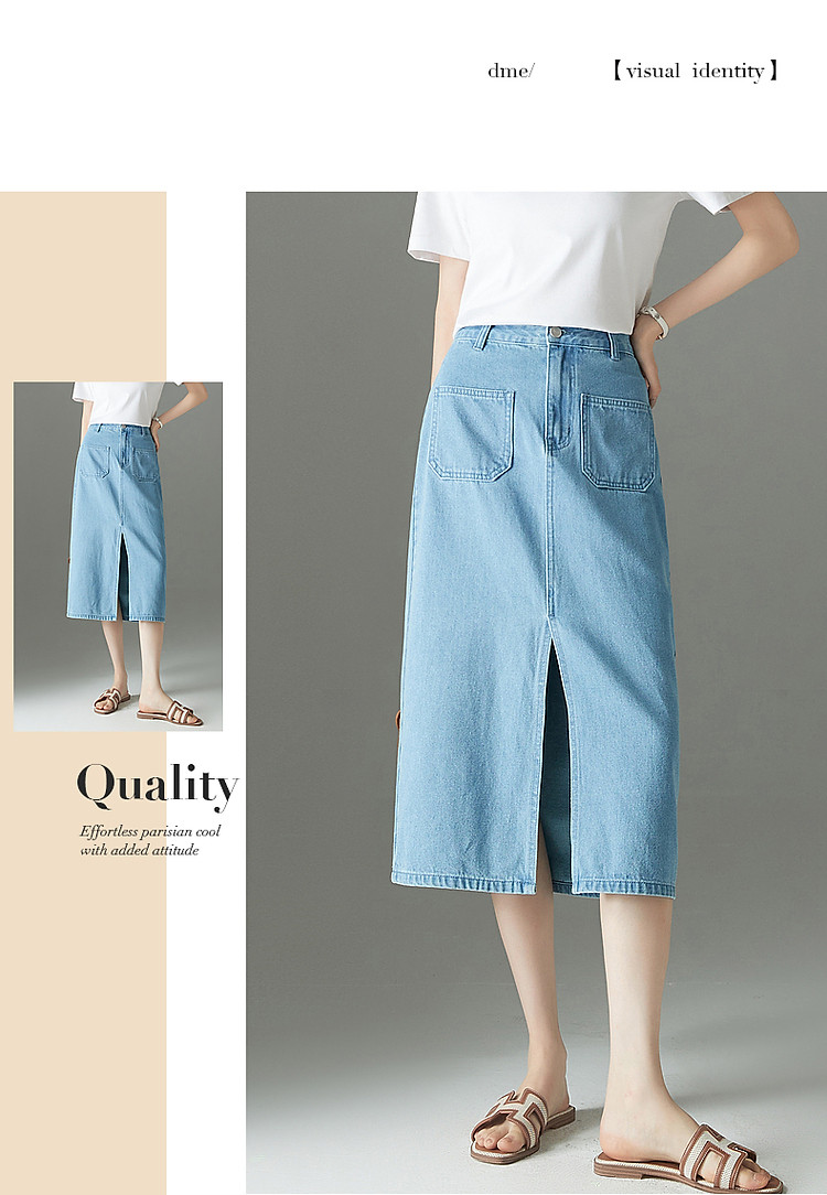 【辣妹穿搭神器】夏季甜酷高腰开衩直筒半身裙子女 911873
