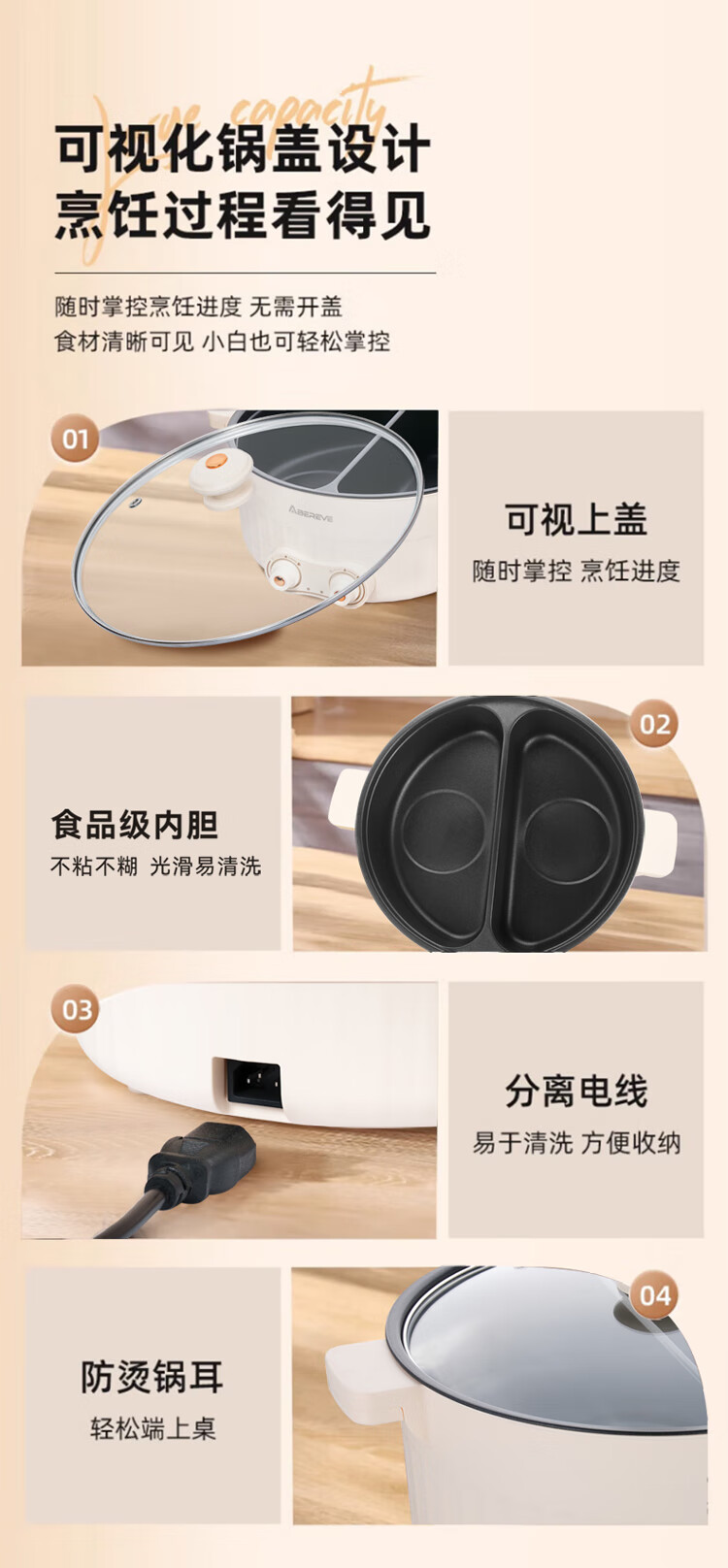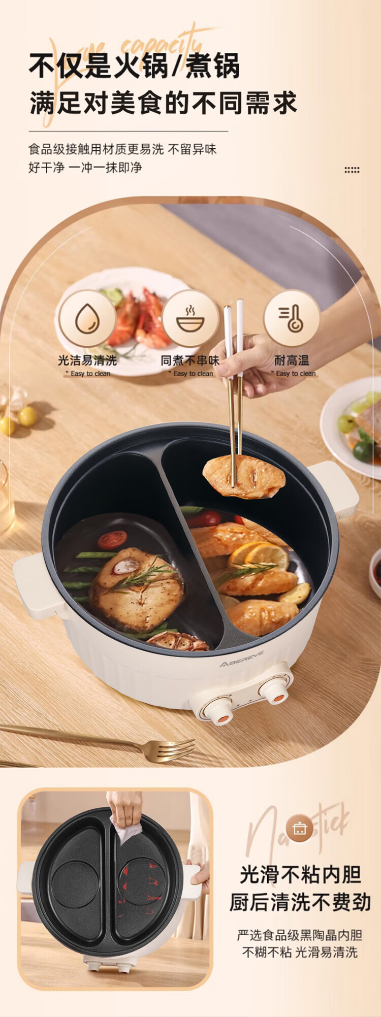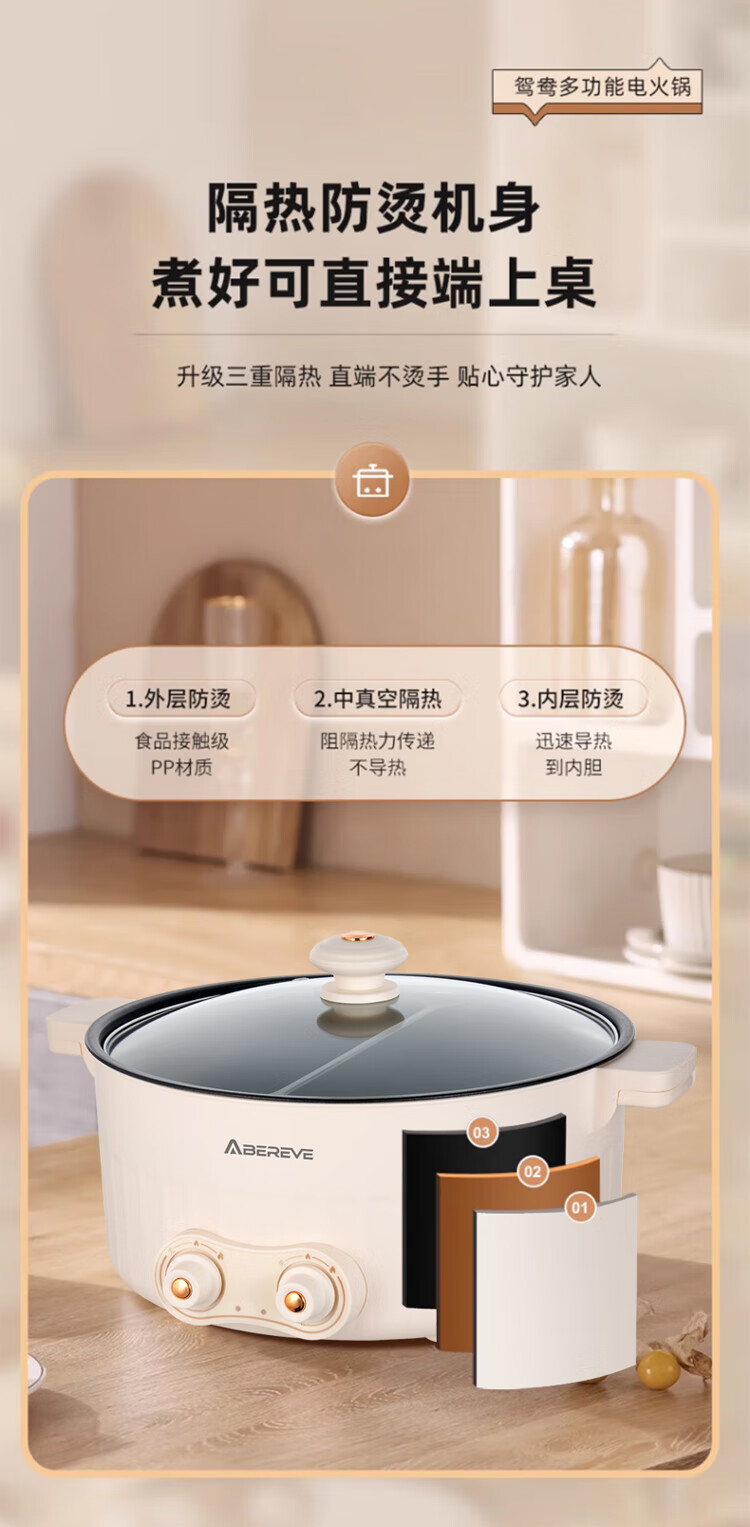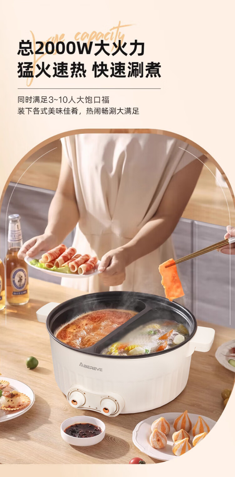 商品名称:ABEREVE/艾贝丽6升多功能鸳鸯锅ABL-HG671